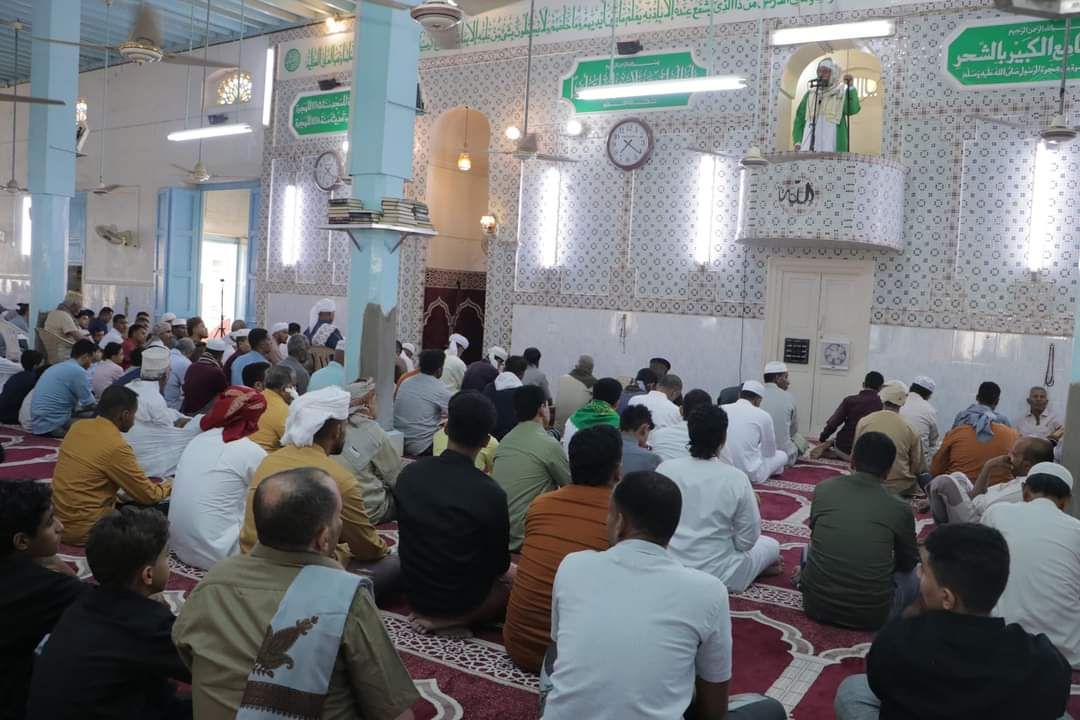 أدى الأستاذ عادل أحمد باعكابة المدير العام لمديرية الشحر ونائبه الأستاذ مصبح العبد البحسني ومعه عدد من مدراء المرافق الخدمية مع جموع المواطنين صلاة عيد الفطر المبارك في جامع الشحر الكبير .