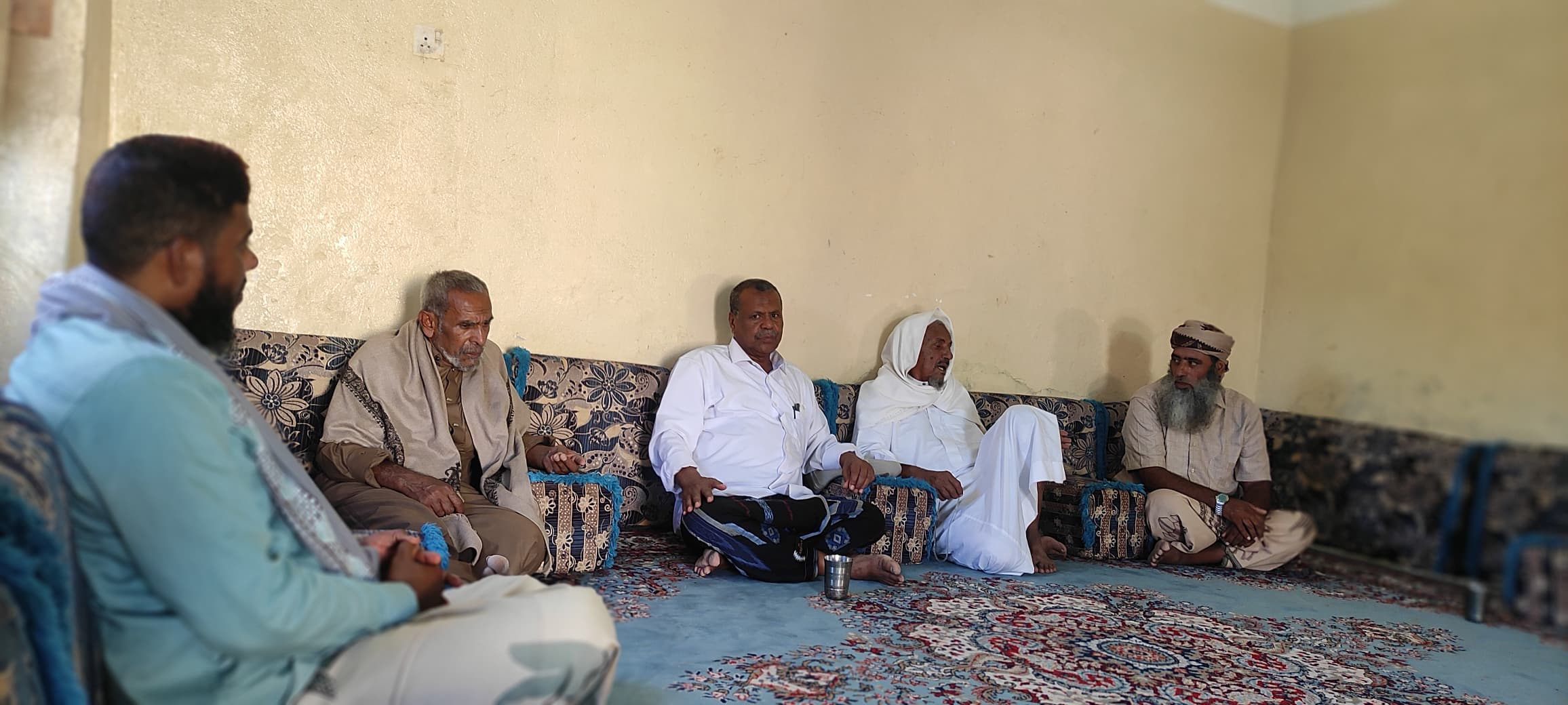 زار رئيس وأعضاء الهيئة التنفيذية لمكتب مؤتمر حضرموت الجامع في مديرية غيل بن يمين عصر اليوم الشيخ البخيت بن مساعد بن الغوية القرزي لتقديم له التهاني والتبريكات بعيد الفطر المبارك.