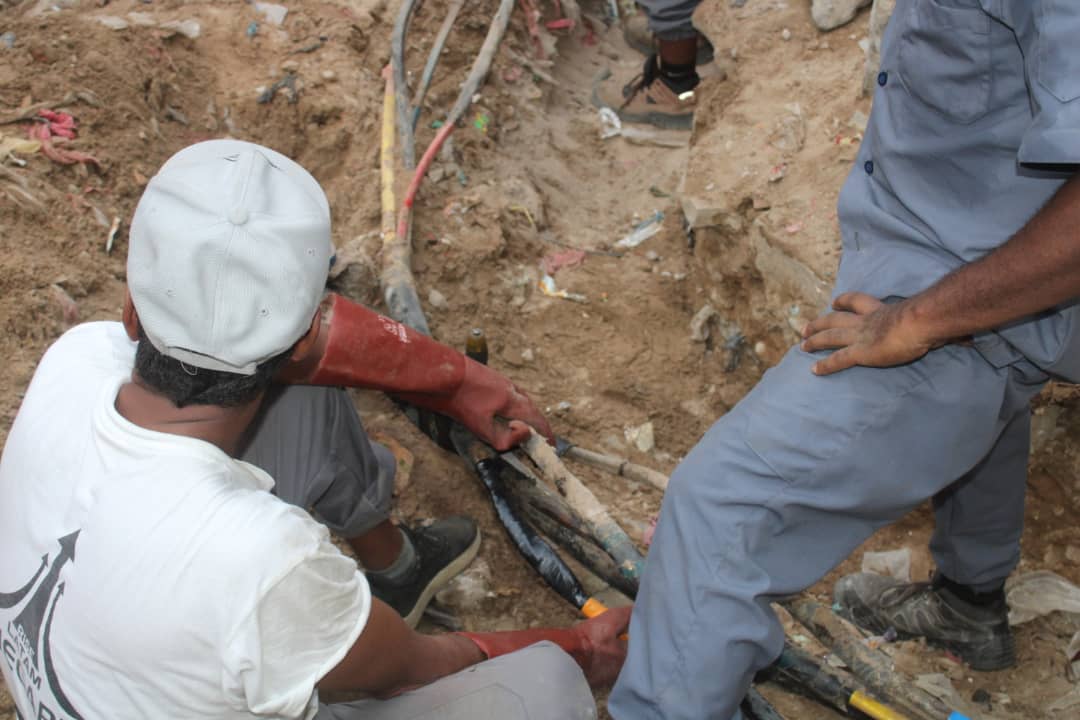 إطلع المدير العام لمديرية مدينة المكلا العميد ركن عبدالله سالم بايعشوت بعد ظهر اليوم على أعمال إصلاح الخلل في إحدى الكابلات الكهربائية المغذية لمنطقة باعبود بالشرج وسط مدينة المكلا.
