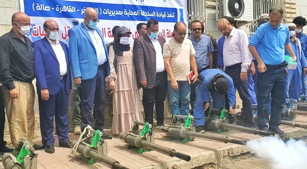 دشن محافظ تعز نبيل شمسان، اليوم، حملة الرش الضبابي لمكافحة حمى الضنك في مديريات المظفر والقاهرة وصالة في إطار الاجراءات الوقائية لمواجهة انتشار الاوبئة والحميات.