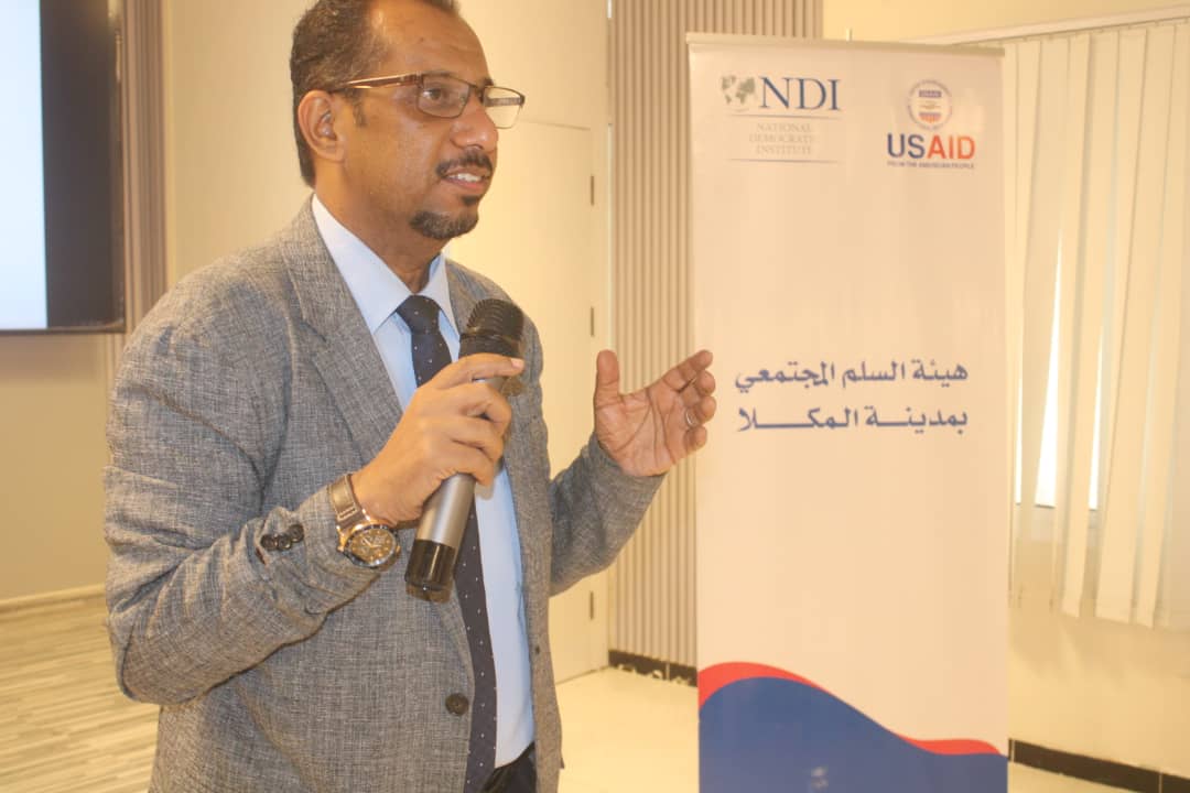 حضر المدير العام لمديرية مدينة المكلا العميد ركن عبدالله سالم بايعشوت صباح اليوم إفتتاحية دورة الإتصال والتواصل الإستراتيجي المنفذه من قبل هيئة السلم المجتمعي بمديرية مدينة المكلا بالشراكة مع المعهد الوطني الديمقراطي NDI وبتمويلٌ من الـــ USAID.