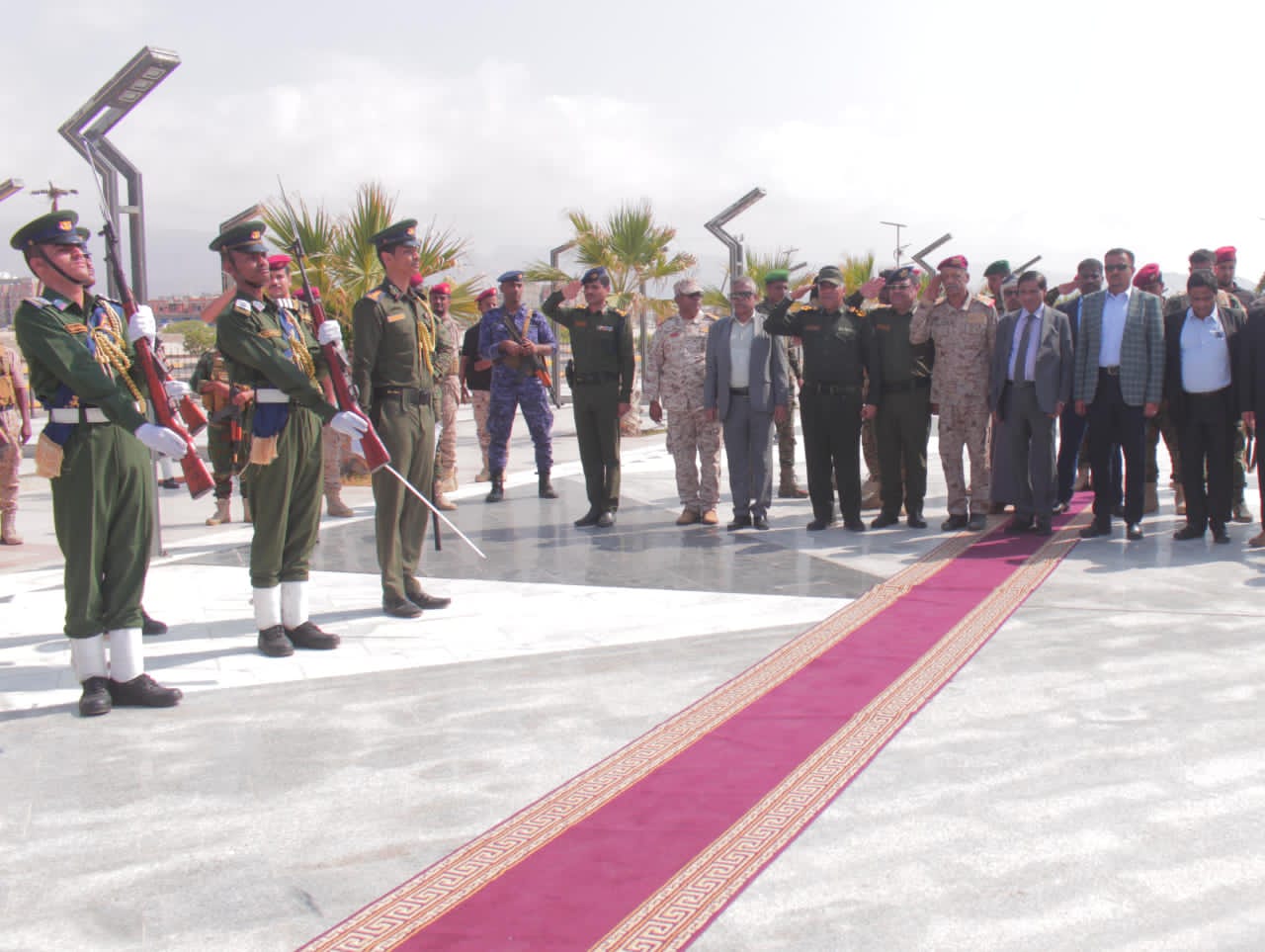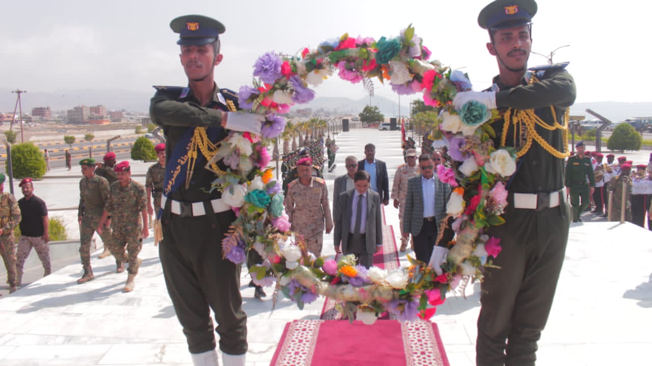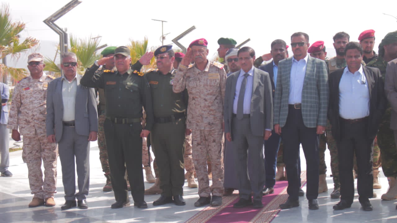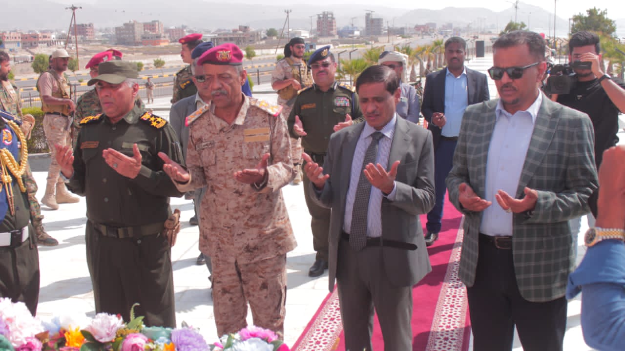 وضع عضو مجلس القيادة الرئاسي اللواء الركن فرج سالمين البحسني وقائد المنطقة العسكرية الثانية قائد لواء حضرموت اللواء الركن طالب سعيد بارجاش، ومعهم أمين عام المجلس المحلي بمحافظة حضرموت الأستاذ/صالح عبود العمقي ،صباح اليوم بالمكلا، إكليلاً من الورد على ضريح الجندي المجهول بالنصب التذكاري وساحة شهداء حضرموت.