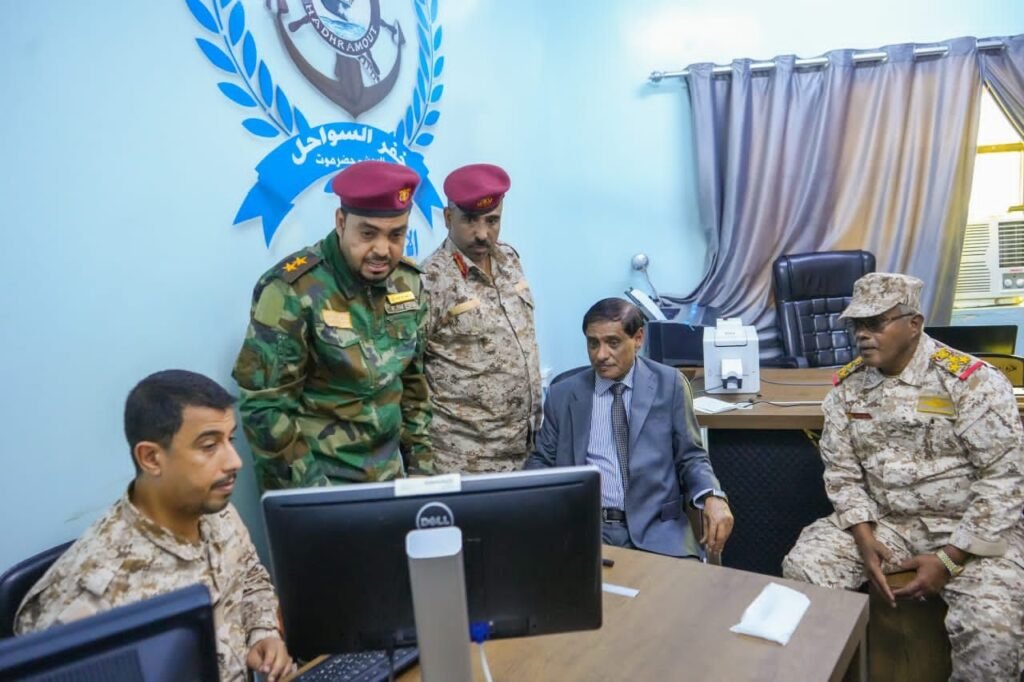 واستمع عضو مجلس القيادة الرئاسي، من قائد قوات خفر السواحل العقيد محمد بامهير، إلى تقرير حول جاهزية القوات في التعامل مع أي أحداث طارئة، لمكافحة الجريمة والتهريب للممنوعات بشتى أنواعها، وجاهزية الضباط والصف ضباط والأفراد، للتعامل مع أي تهديد يشكل خطرًا على سواحل حضرموت، بالإضافة إلى التجربة الرائدة للقوات في مجال التكنولوجيا وربطها بالجانب العسكري، من خلال تأسيس نظام إلكتروني بإدارة الأمن البحري، والذي أسهم في تأسيس قاعدة بيانات رقمية، وشبكة اتصالات لربط وتعزيز دور الأمن البحري في رصد الجريمة والمخالفات ومكافحتها.