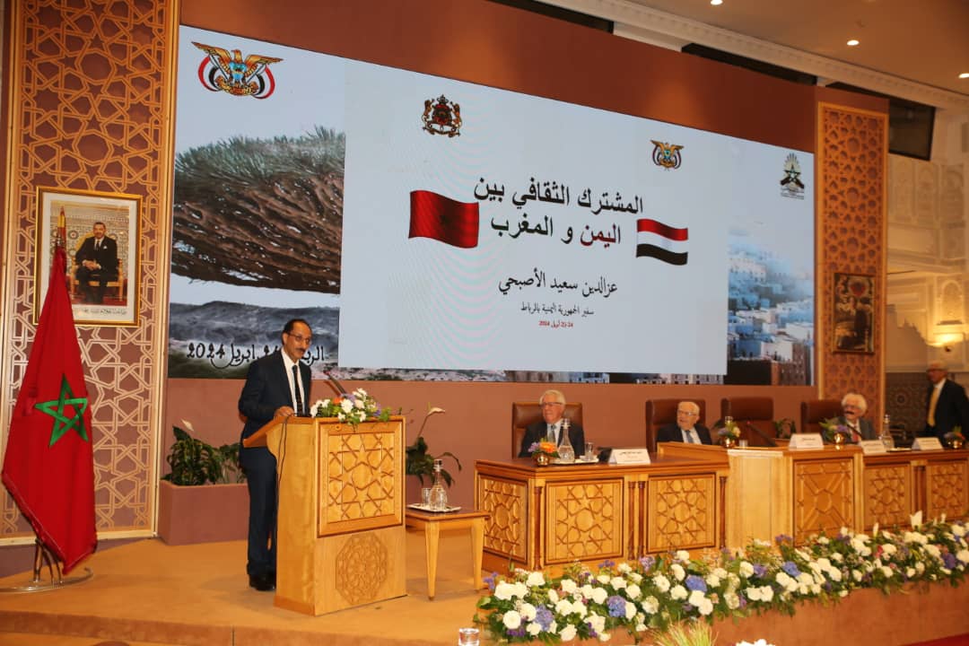 ولفت الاصبحي، الى العلاقات الاستراتيجية الوطيدة بين اليمن والمغرب، الضاربة في جذور التاريخ منذ الهجرات اليمنية القديمة التي انطلقت من الداخل اليمني متجهة إلى عديد المناطق والأقاليم المغربية..مشيراً إلى التشابه الكبير الذي يصل إلى حد التطابق بين الثقافتين على العديد من المستويات الاجتماعية والعمرانية والتراثية..مقدماً عرضاً حول (المشترك الثقافي بين اليمن والمغرب).