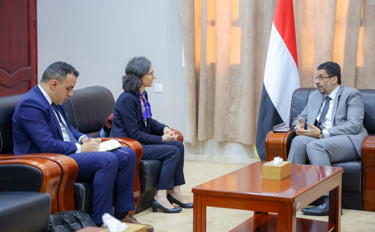 ناقش رئيس مجلس الوزراء الدكتور أحمد عوض بن مبارك، خلال لقائه في العاصمة المؤقتة عدن، اليوم الخميس، سفيرة جمهورية فرنسا لدى اليمن كاترين كمون، أوجه الدعم الفرنسي للحكومة اليمنية والتحديات الاقتصادية والإنسانية التي تواجه الحكومة وخاصة في قطاع الخدمات الأساسية للمواطنين نتيجة للحرب الاقتصادية التي تشنها مليشيا الحوثي على الحكومة والشعب اليمني.