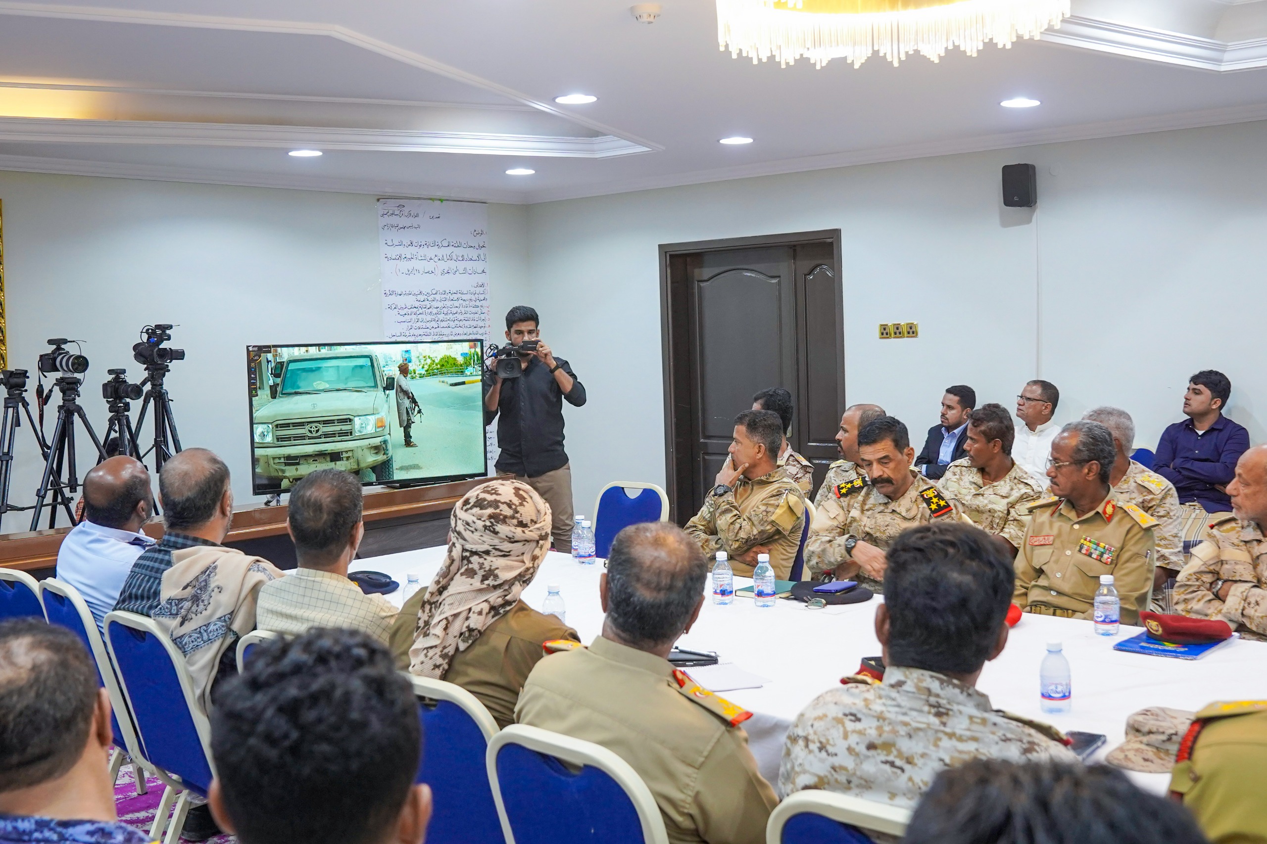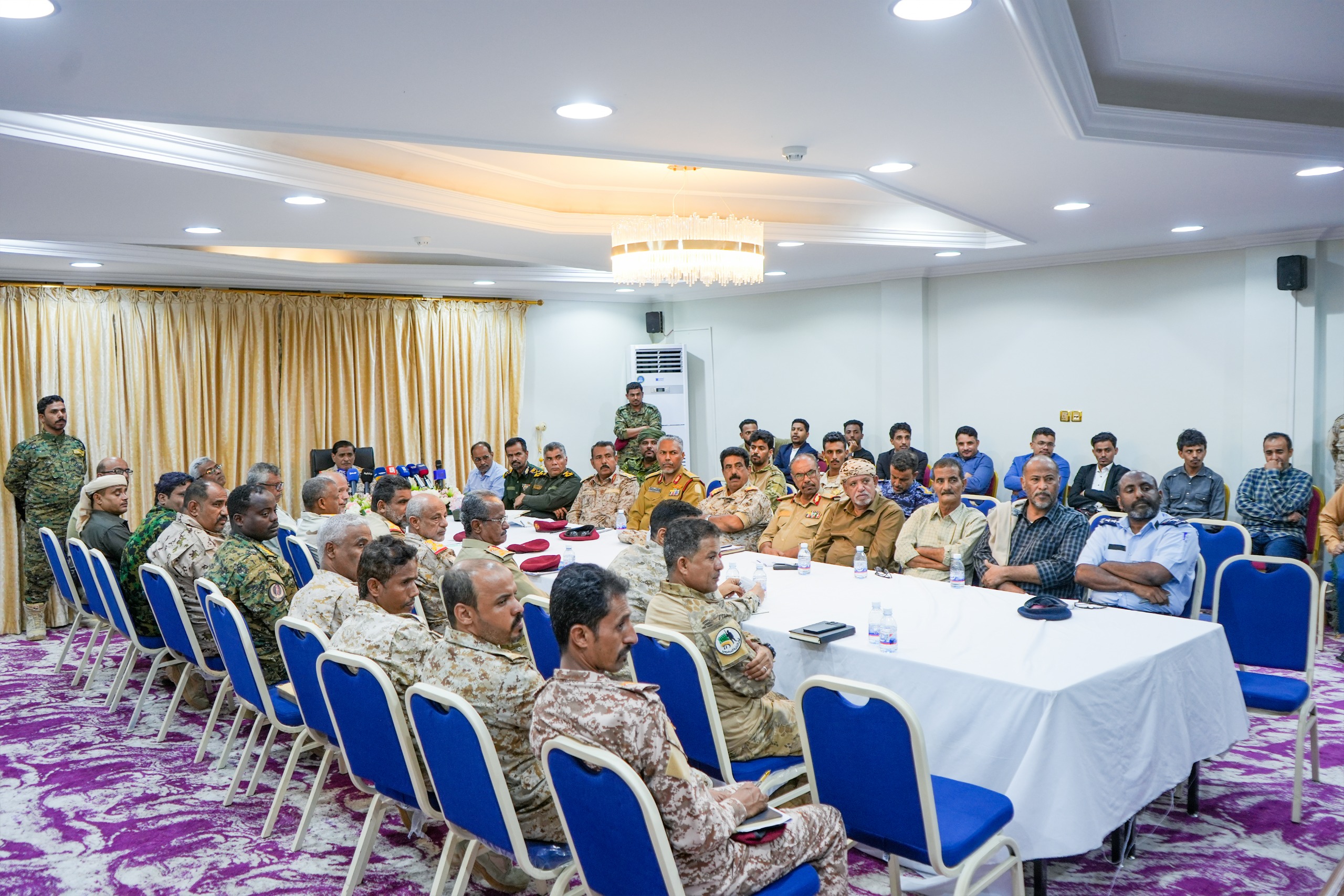 جاء ذلك خلال لقاء عضو مجلس القيادة الرئاسي، مساء اليوم بالمكلا، أعضاء اللجنة الأمنية بساحل حضرموت، وبحضور وكيل محافظة حضرموت لشؤون الأمن والدفاع العميد صالح لحمدي، وأركان المنطقة العسكرية الثانية العميد محمد اليميني، والمدير العام للأمن والشرطة بالساحل العميد مطيع المنهالي، وقادة الألوية والمحاور والوحدات العسكرية والأمنية، بهدف تقييم وتحليل التمرينات العسكرية والأمنية التي تم تنفيذها ضمن برنامج الاحتفالات بالذكرى الثامنة لتحرير ساحل حضرموت من عناصر تنظيم القاعدة الإرهابي.