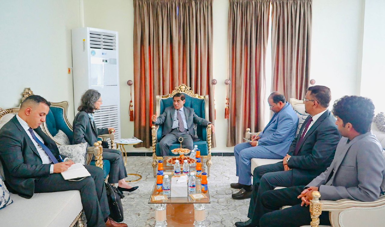 وتطرق اللقاء، إلى مستجدات الأوضاع السياسية، والجهود الإقليمية والدولية لإحلال السلام في اليمن، والتعاطي الإيجابي من قبل مجلس القيادة الرئاسي والحكومة مع جميع المبادرات، بهدف تخفيف المعاناة عن المواطنين.