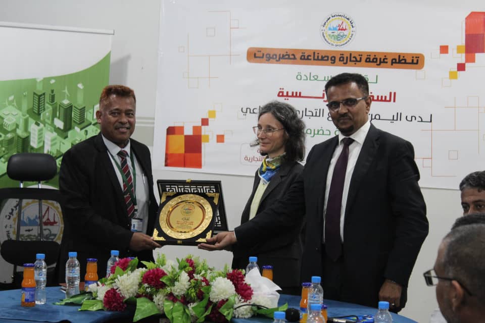نظمت غرفة تجارة وصناعة حضرموت، اليوم بالمكلا، لقاء بحضور قيادة السلطة المحلية بالمحافظة وسفارة الجمهورية الفرنسية لدى بلادنا، لبحث فرص تطوير القطاع الإقتصادي مع السفارة الفرنسية في إطار الدفع بعملية التنمية، ودعم مشاريع ريادة الأعمال.