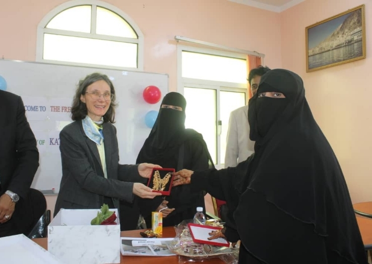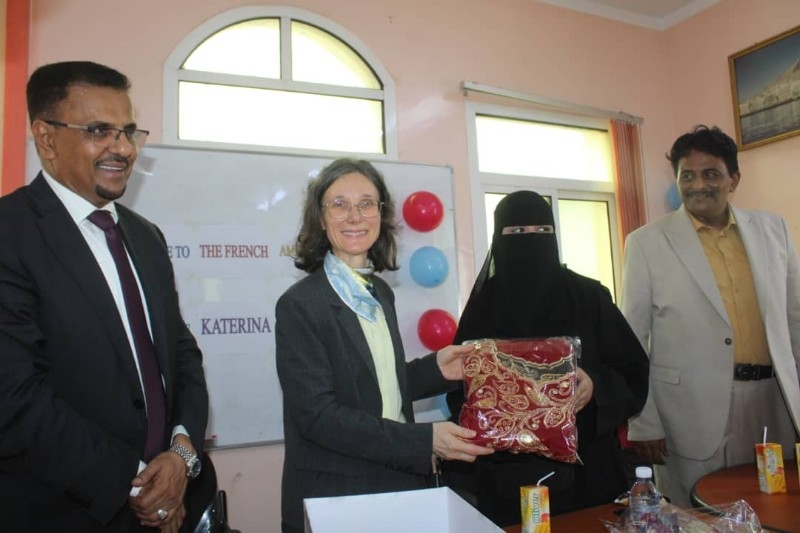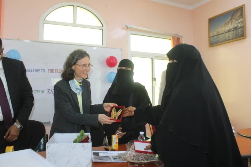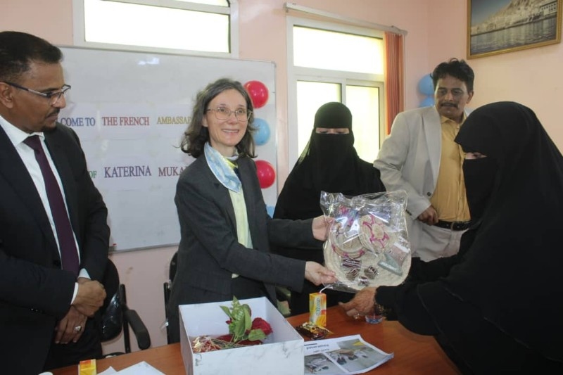 وفي ذات السياق، التقت السفيرة الفرنسية والأمين العام لمحلي حضرموت نساء جمعية الصيادين بالمكلا، حيث استمعا من رئيسة الجمعية منى البحيري، على دور الجمعية في مساعدة أسر الصيادين وتمكينهم إقتصاديا من خلال تنفيذها لعدد من الدورات النسائية في جانب الخياطة والتطريز والكوافير والحناء، التي تسهم من تعزيز مصادر دخلهم وتحسين وضعهم المادي.