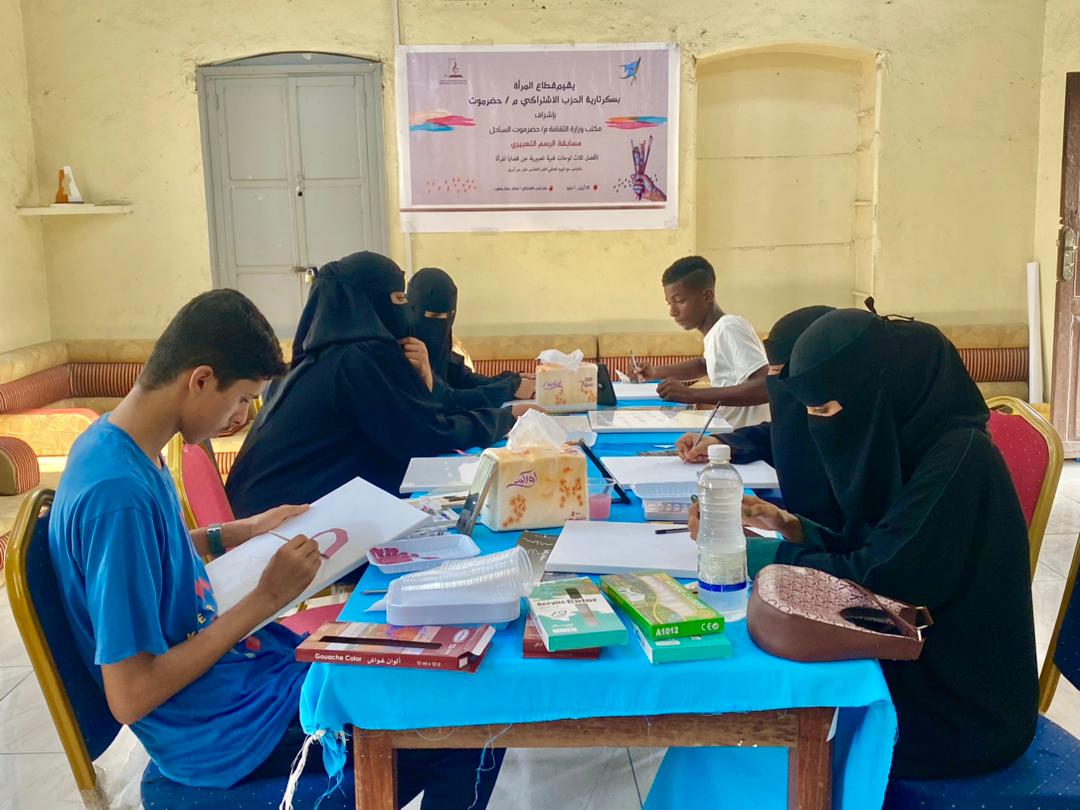 دشن قطاع المرأة بسكرتارية الحزب الاشتراكي بمحافظة حضرموت، بإشراف مكتب وزارة الثقافة بساحل حضرموت، فعالية الرسم لأفضل ثلاث لوحات فنية تعبر عن الأم ودورها، في المعرض الفني، بمقر الحزب الاشتراكي بمدينة المكلا.