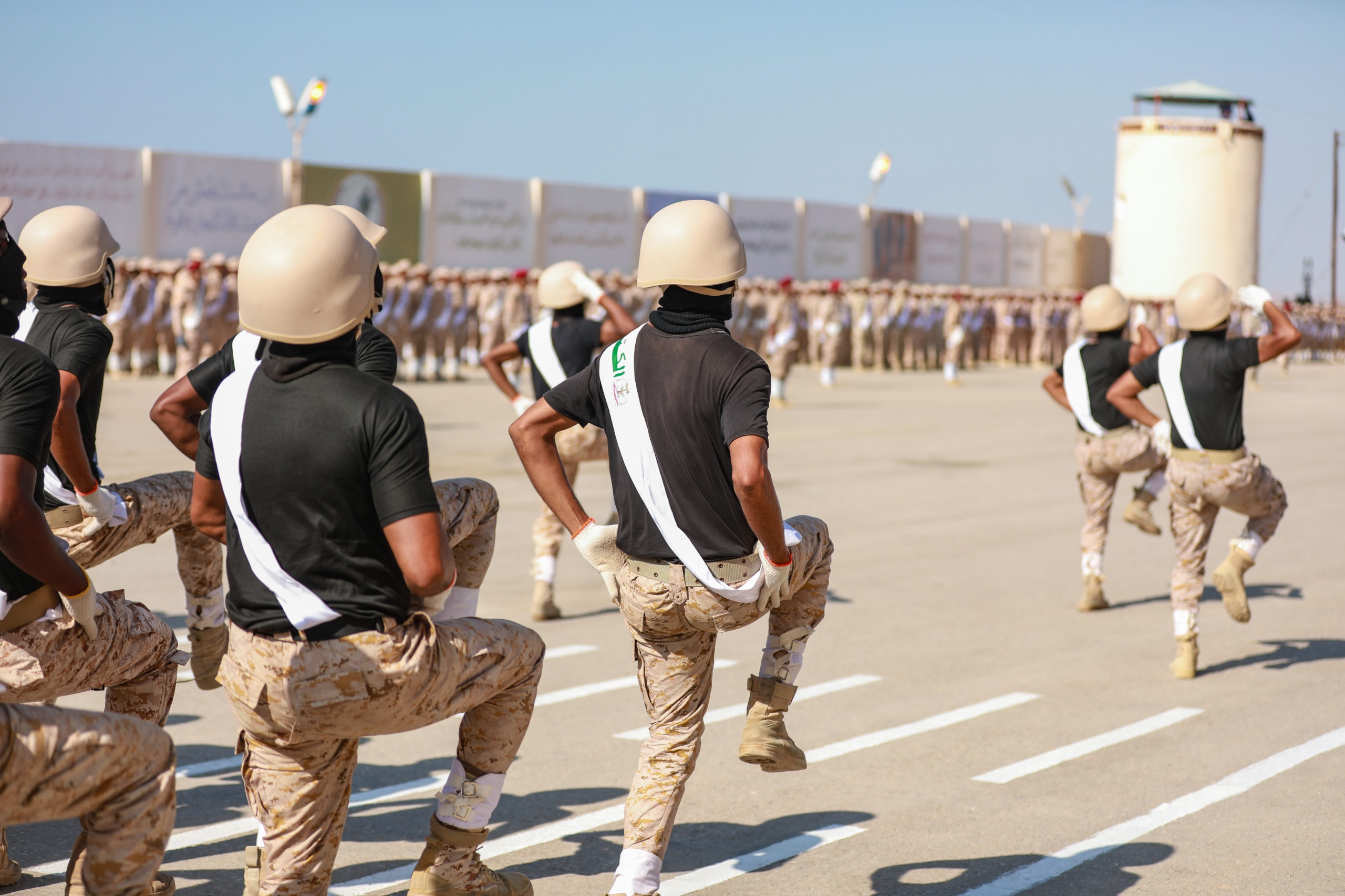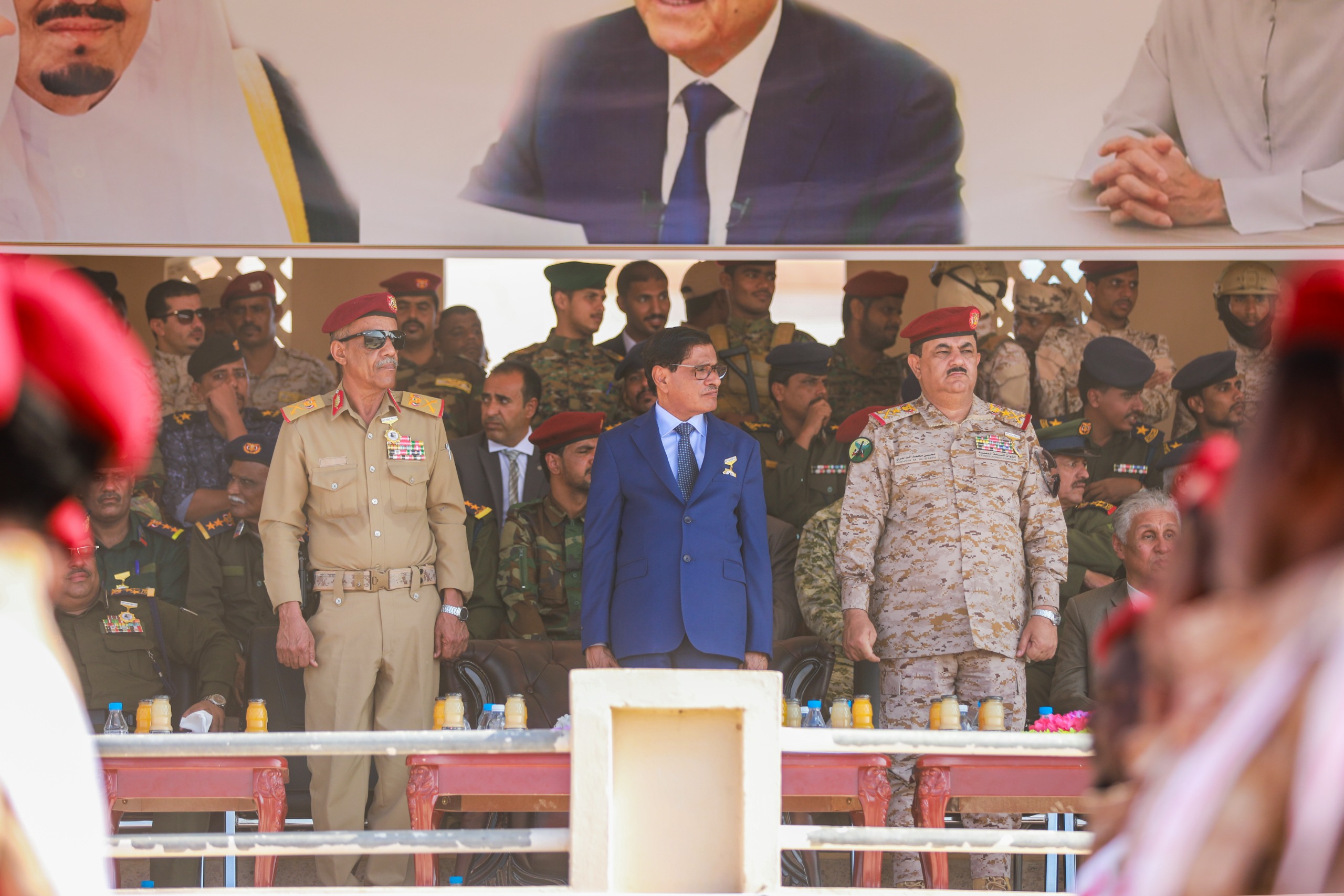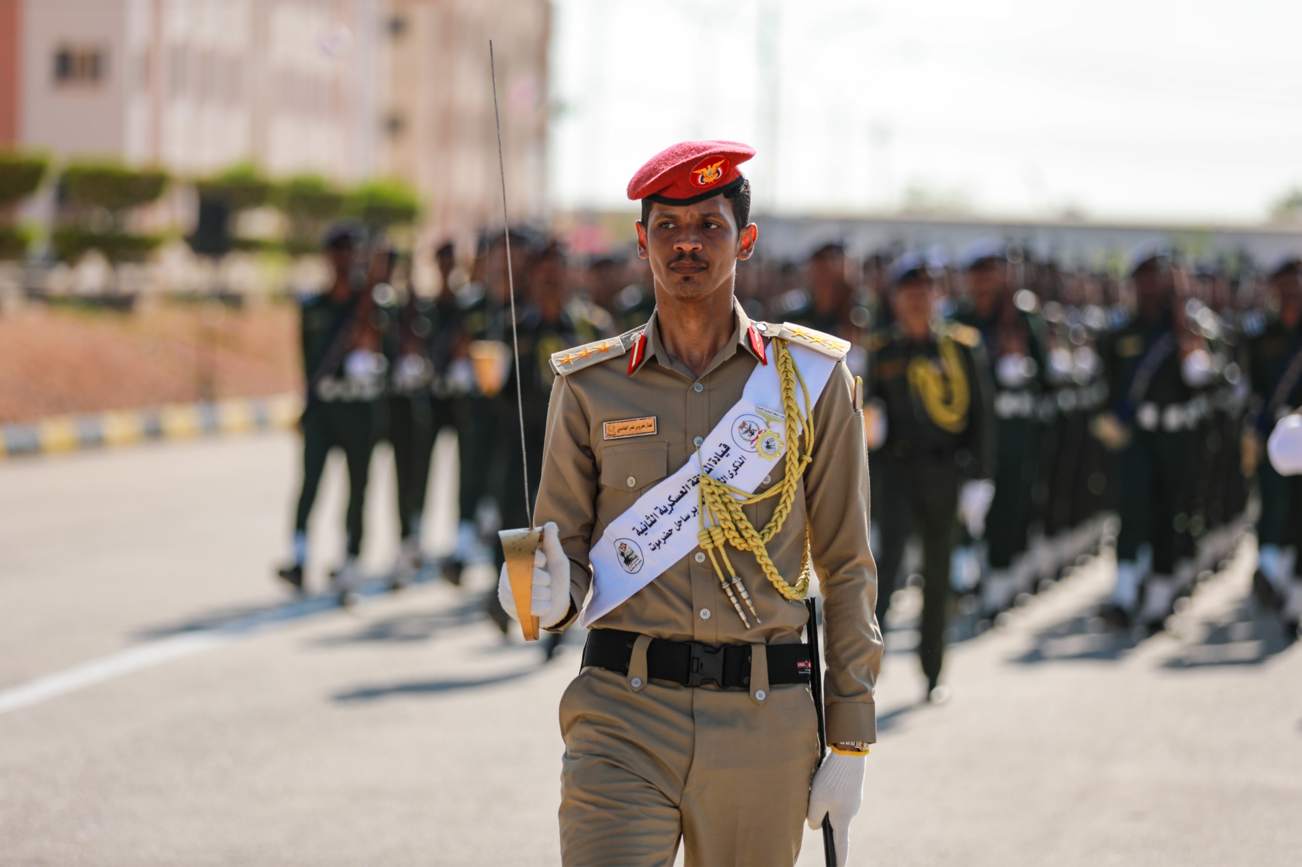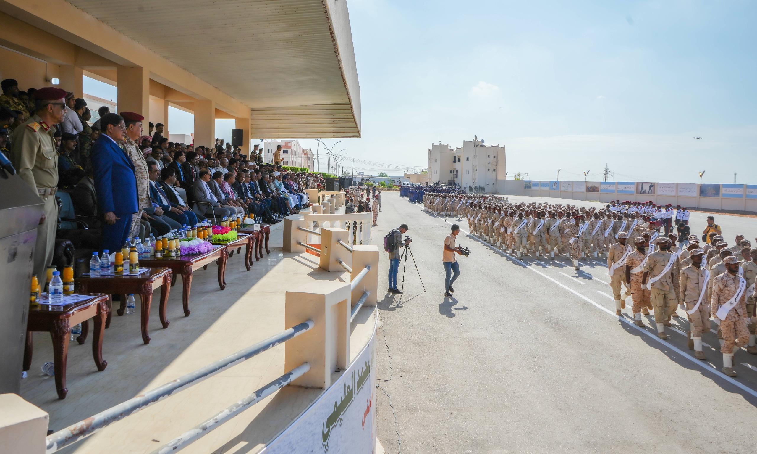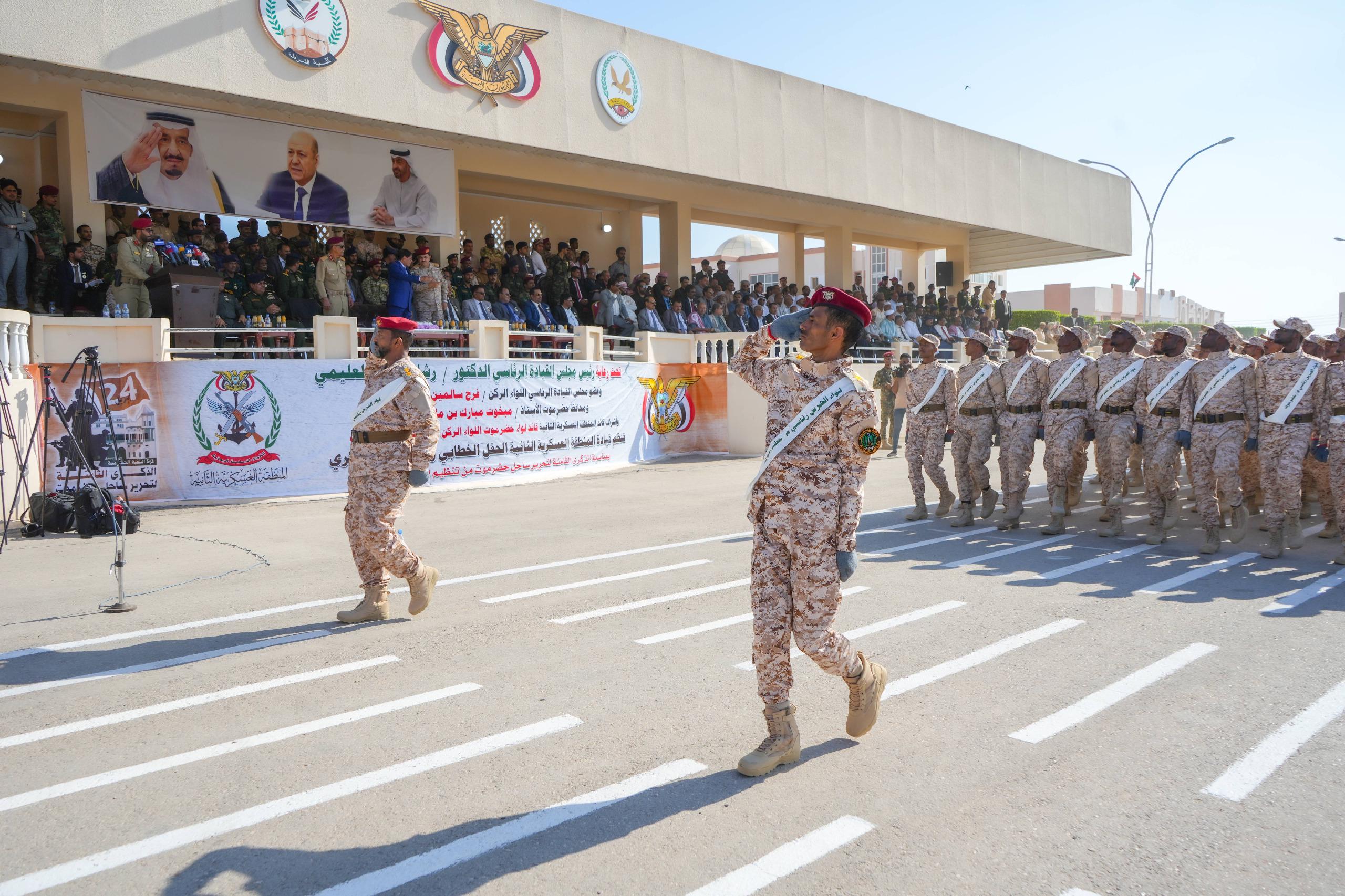 وفي العرض الذي حضره وزير الدفاع الفريق الركن محسن محمد الداعري، وسفير بلادنا لدى دولة الإمارات العربية المتحدة فهد سعيد المنهالي، والأمين العام للمجلس المحلي بمحافظة حضرموت صالح عبود العمقي، وقائد المنطقة العسكرية الثانية اللواء الركن طالب سعيد بارجاش، وأعضاء مجلسي النواب والشورى، ووكلاء محافظة حضرموت، والقضاة والأكاديميون، والقادة العسكريون والأمنيون بمحافظة حضرموت، قدّمت الوحدات العسكرية والأمنية، عرضًا عسكريًا مهيبًا، تقدمهم قائد العرض العقيد غالب المرفدي، ومجموعات العرض، لإلقاء التحية على عضو مجلس القيادة الرئاسي، ووزير الدفاع، مستعرضين جاهزيتهم القتالية العالية وقوّتهم لتنفيذ المهام الوطنية، للذود عن تراب الوطن، وحماية المكتسبات المحققة، كما تخللت فقرات العرض استعراضًا رياضيًا لإبراز اللياقة البدنية، وتشكيل لوحة فنية بعنوان 24 ابريل.