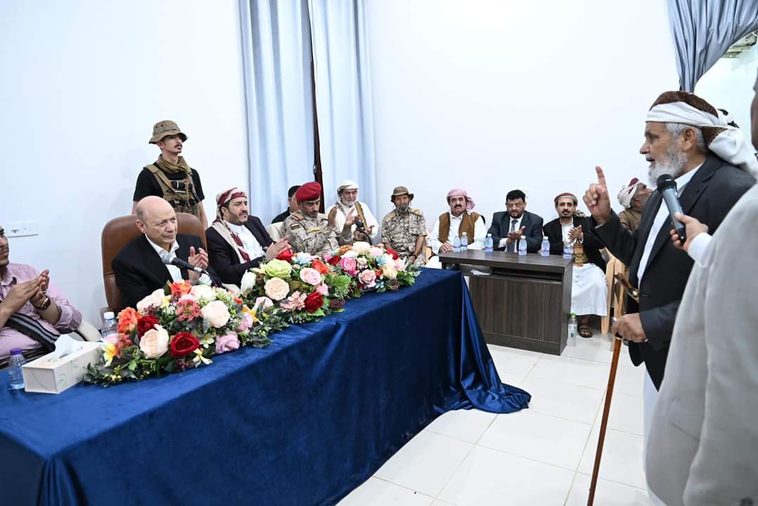 كما أشاد رئيس مجلس القيادة الرئاسي بالدور الرائد لأبناء محافظة الجوف وكافة المحافظات في مواجهة المشروع الإمامي المدعوم من النظام الإيراني.