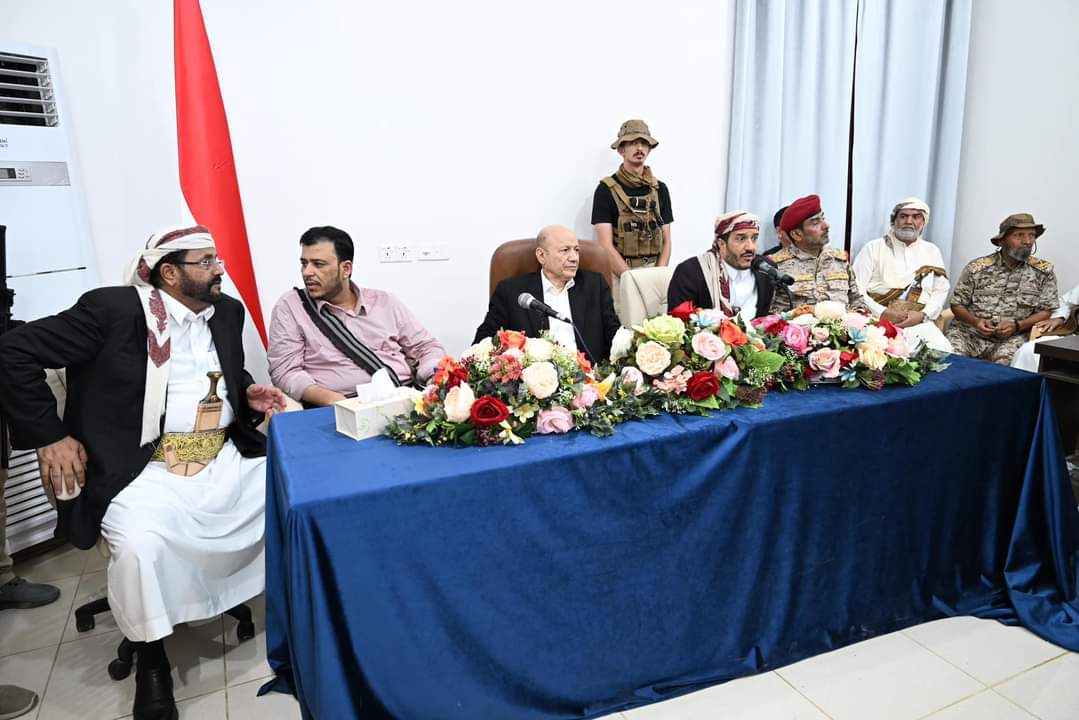 التقى فخامة الرئيس الدكتور رشاد محمد العليمي رئيس مجلس القيادة الرئاسي، ومعه اعضاء المجلس سلطان العرادة، وعبدالله العليمي، وعثمان مجلي القيادات الرسمية والسياسية والشعبية في محافظة مأرب.