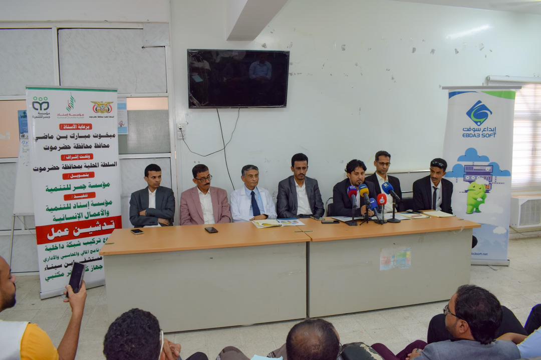 دشن وكيل محافظة حضرموت الأستاذ حسن الجيلاني، عمل مشروع تركيب شبكة داخلية وتركيب البرنامج المالي والمحاسبي والإداري، بهيئة مستشفى ابن سيناء المركزية، بتنفيذ مؤسسة إسناد للتنمية والأعمال الإنسانية، وتمويل مؤسسة جسر للتنمية بمدينة المكلا.