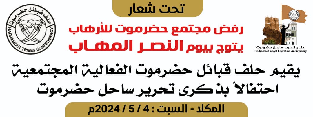 يقيم حلف قبائل حضرموت بعد غدٍ (السبت) في مدينة المكلا فعالية مجتمعية احتفاء بالذكرى الـ 8 لتحرير ساحل حضرموت من قوى التطرف والإرهاب.