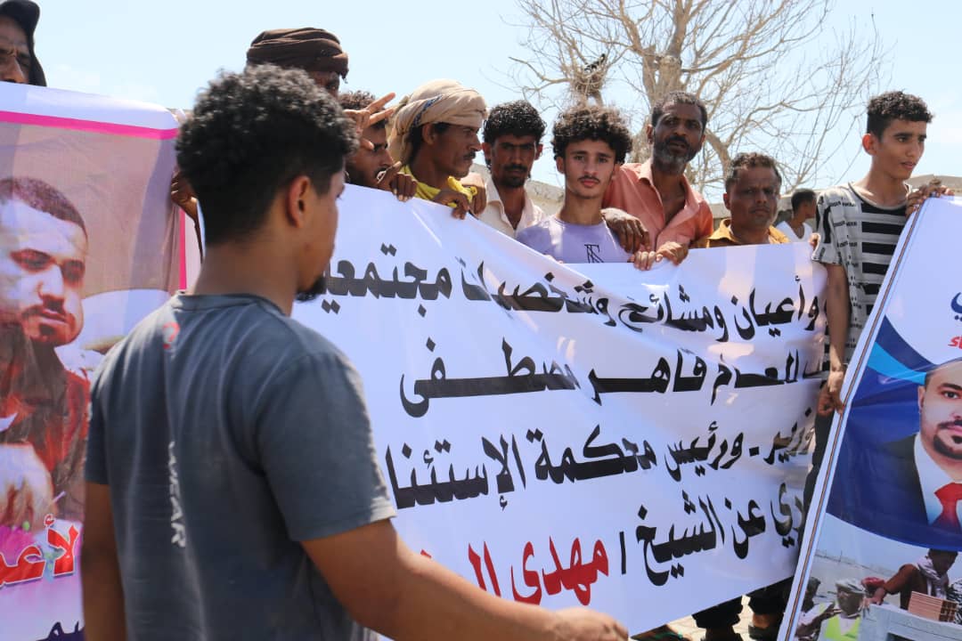 واثناء الوقفة الاحتجاجية افاد وسيم محمد ناصر دحيله قائلا تاتي هذه الوقفه تضامنا مع الشيخ مهدي العقربي والذي تم احتجازه اثر قرارا باطلا بحبسه بقصد الأضرار به بتحريك قضية منتهية الامد سنة 2014 لصالحه…