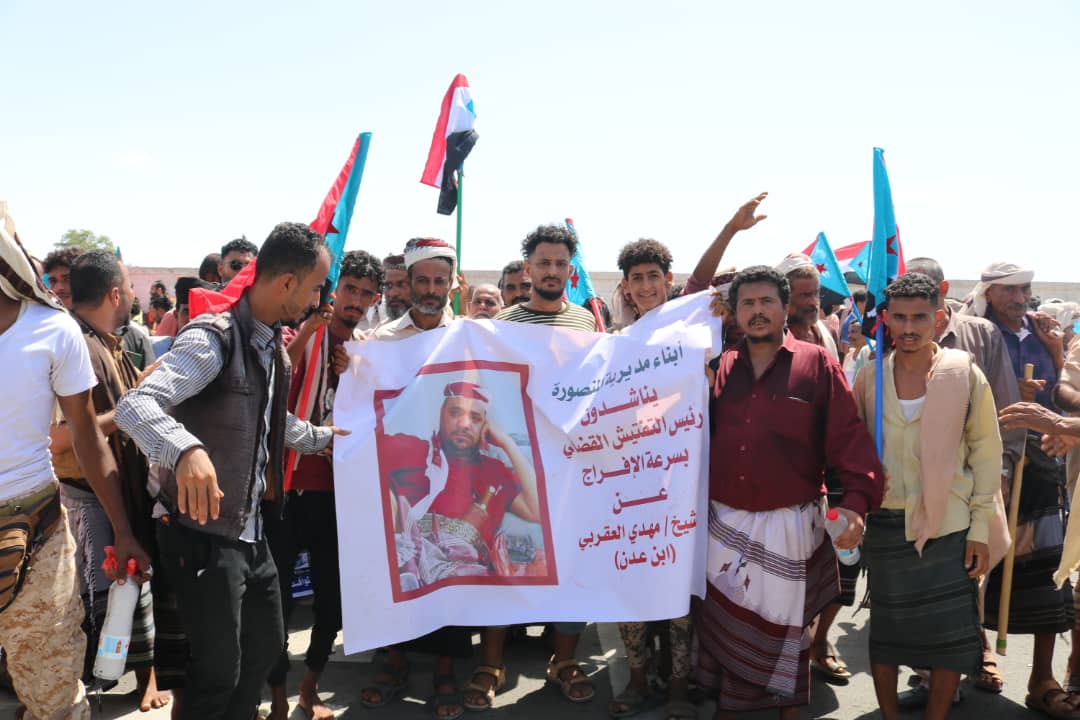 حيث اعتبروا الوقفة الاحتجاجية التضامنية احتجاز وحبس الشيخ مهدي العقربي استهدافا لعدن وأبنائها ولكل الشرفاء والاحرار و التي تستهدف عدن بخدماتها الأساسية و اعيانها و شخصياتها الاعتبارية الفاعلة و النزيهة ولكل من يريد النهوض بعدن.