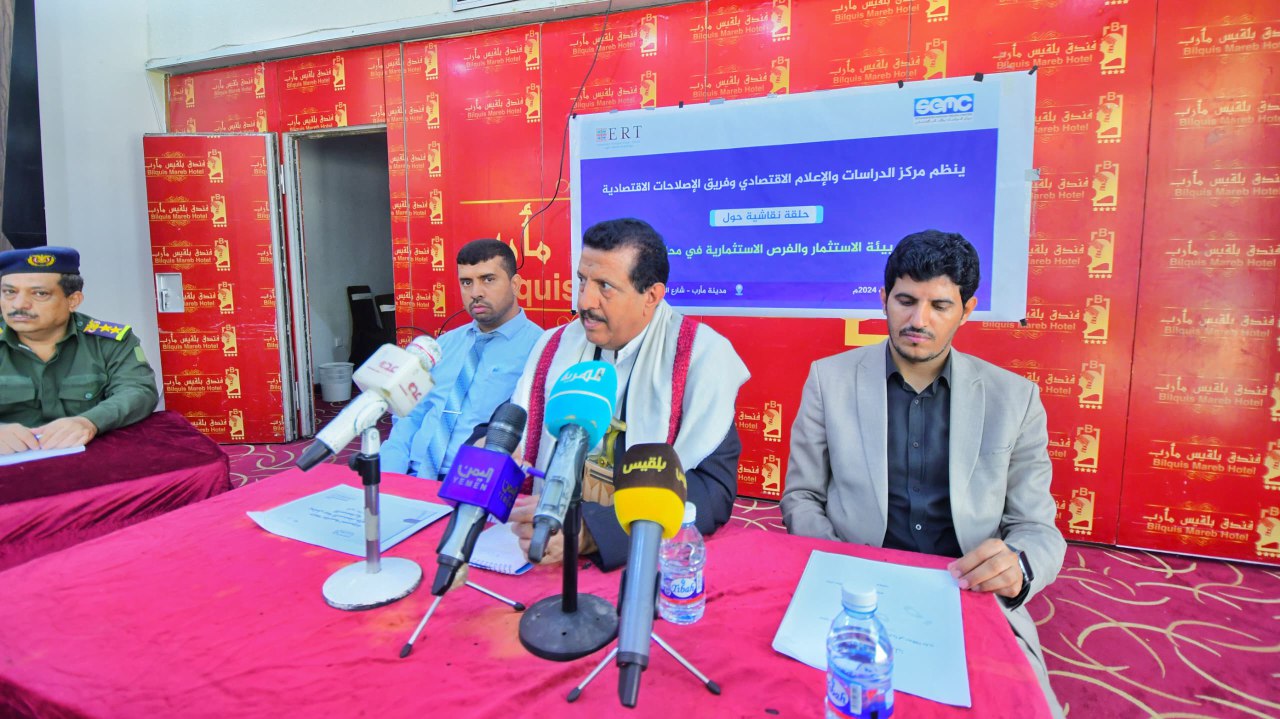 أقيمت في محافظة مأرب، اليوم، حلقة نقاشية خاصة بتحليل بيئة الاستثمار والفرص الاستثمارية في المحافظة، نظمها مركز الدراسات والاعلام الاقتصادي وفريق الاصلاحات الاقتصادية.