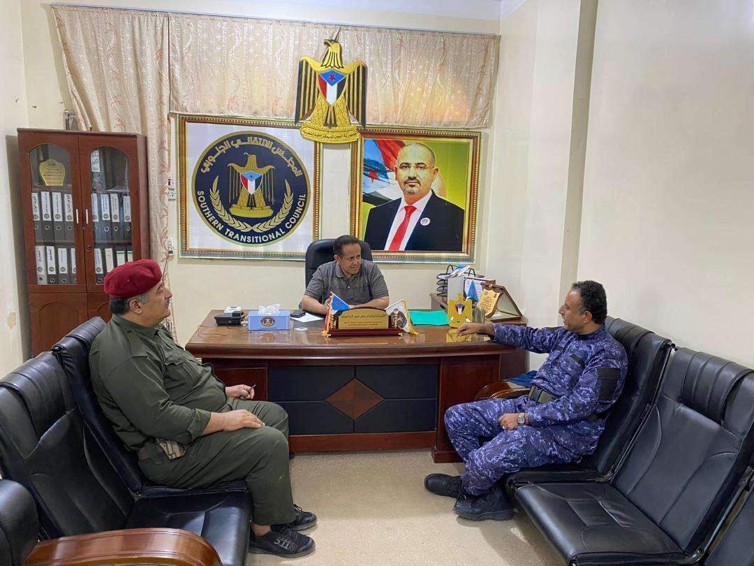 التقى رئيس الهيئة التنفيذية للقيادة المحلية للمجلس الانتقالي الجنوبي في محافظة لحج، وضاح الحالمي، اليوم الأربعاء، قائد شرطة الدوريات وأمن الطرق والنجدة في محافظة لحج، محمد عمر الجنيد، وقائد كتيبة المداهمات، النقيب فكري علي صالح.