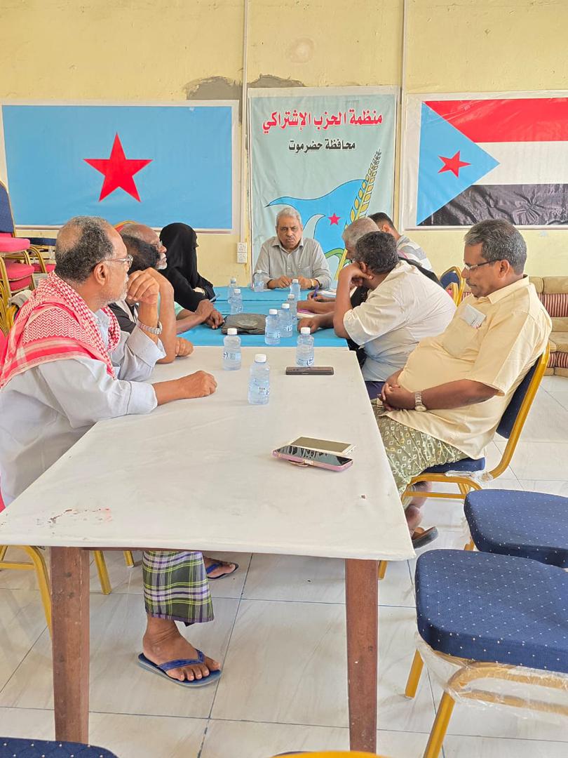 وقدم السكرتير الأول خلال الاجتماع إحاطة عامة حول الأوضاع السياسية والصعوبات التي تواجه المواطنين على مستوى الخدمات في حضرموت خاصة والمناطق الجنوبية عامة.