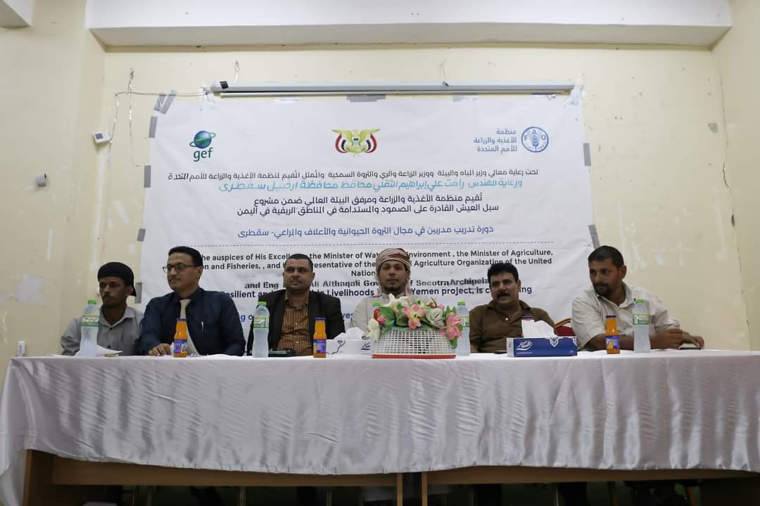 دشن محافظ محافظة أرخبيل سقطرى المهندس رأفت الثقلي، اليوم دورتين تدريب مدربين في مجالي الثروة الحيوانية والاعلاف الزراعية ومسح اساسيات المصائد السمكية في المحافظة.