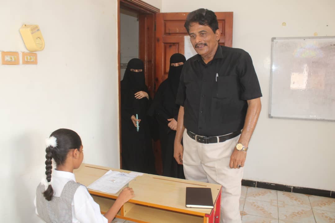 واستمع العميد عبدالله بايعشوت من موجه مكتب التربية والتعليم دولة محمد الهمداني إلى شرحاً مفصلاً حول سير الإختبارات و مدى تجاوب الطالبات بمختلف المستويات.