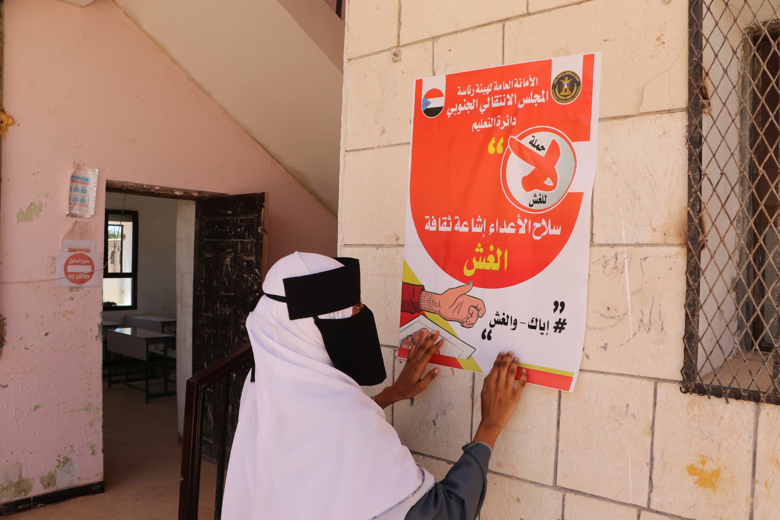 هذا وقد تم إلقاء محاضرة توعوية لعدد من الطالبات في مدرسه خوله بنت الأزور للبنات حول ظاهرة الغش ألقتها الاستاذة صفيه كدة مدير إدارة التعليم والاستاذ عمار رعفيت نائب مدير الإدارة السياسية بانتقالي المهرة بالاضافة إلى توزيع الملصقات البروشورات التوعية على الطالبات.
