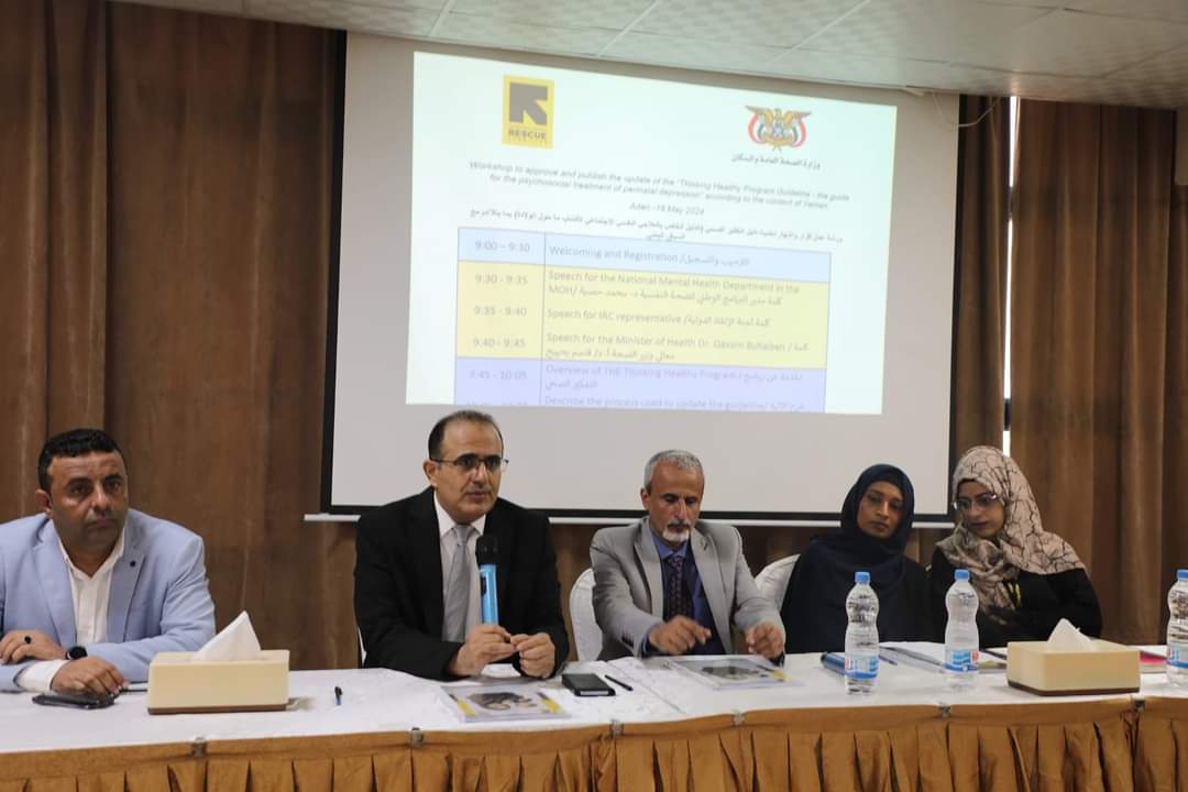 نظم البرنامج الوطني للصحة النفسية بوزارة الصحة وبدعم من لجنة الإنقاذ الدولية، في العاصمة المؤقتة عدن، اليوم، ورشة إقرار واشهار دليل العلاج النفسي والاجتماعي لاكتئاب ما حول الولادة، بحضور وزير الصحة العامة والسكان الدكتور قاسم بحيبح.