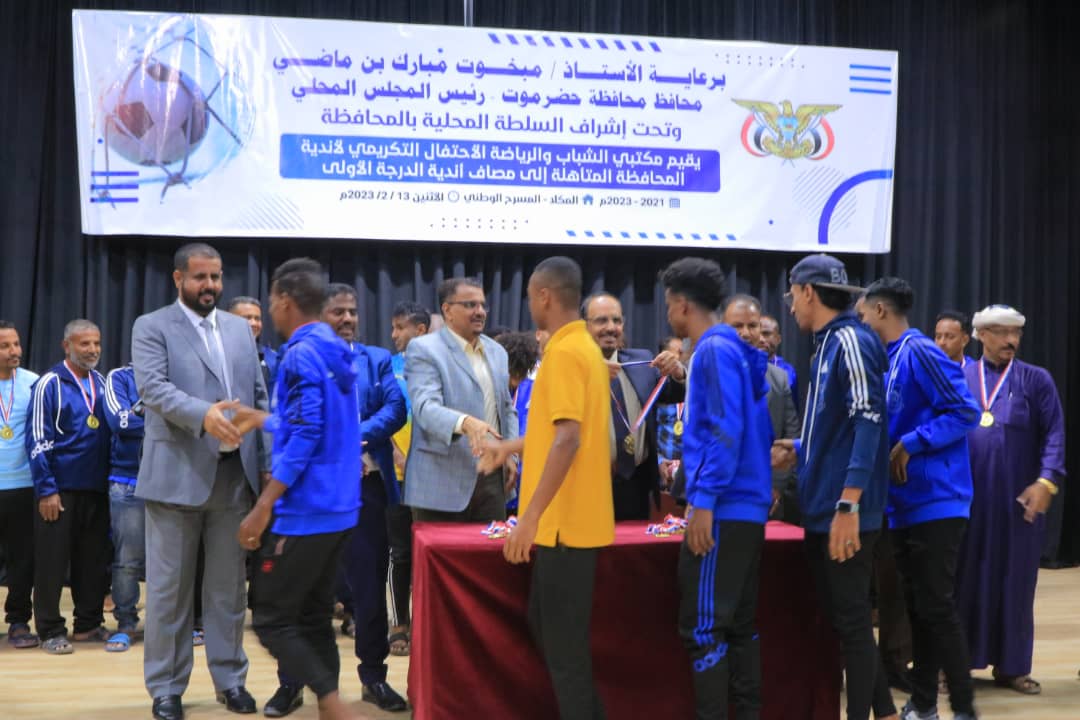 وهنأ المحافظ في كلمته في الحفل الذي أشرفت عليه السلطة المحلية بالمحافظة ونظّمه مكتبا الشباب والرياضة بالساحل والوادي، اليوم بالمكلا، هنأ فرق سمعون والتضامن وسلام الغرفة لتأهلهم الى الدرجة الاولى، واحراز فريق سمعون بطولة الدرجة الثانية والتضامن مركز الوصيف، مؤكدًا ان ذلك يأتي في سياق الانجازات الرياضية التي تتحقق لحضرموت في ظل اهتمام قيادة السلطة المحلية بالشباب والرياضيين، والافتخار بوجود أربعة فرق من حضرموت في مصاف الدرجة الأولى.