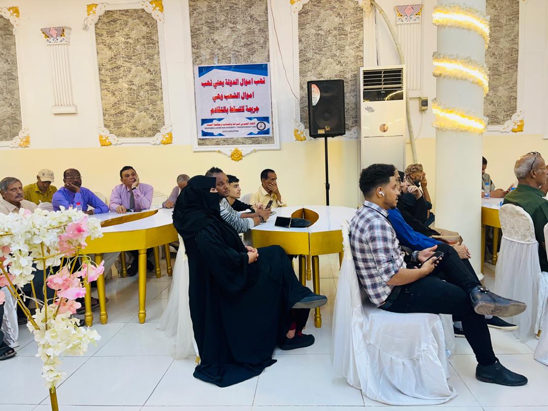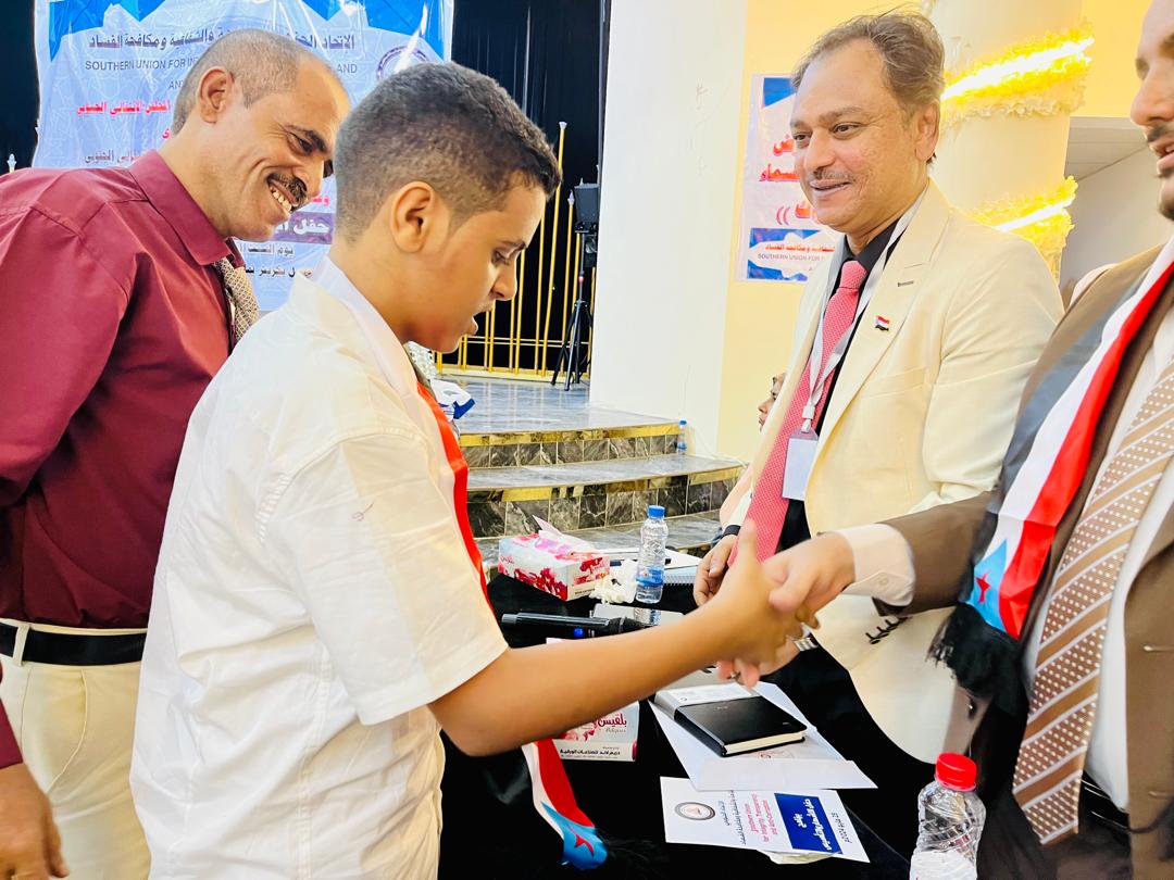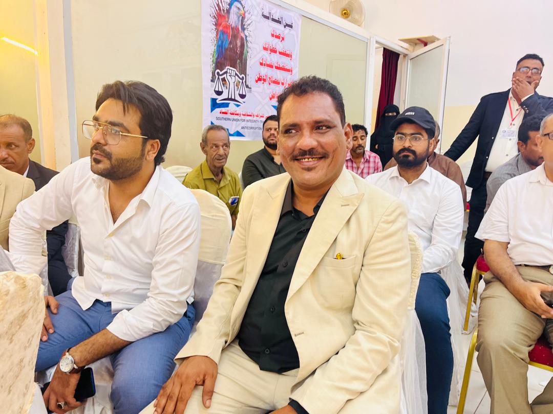 تم صباح اليوم السبت في العاصمة عدن حفل إشهار الاتحاد الجنوبي للنزاهة والشفافية ومكافحة الفساد والذي أقيم بقاعة باطويل بمديرية صيرة بحضور مكتب المبعوث الامم وعدد أعضاء هيئة رئاسة المجلس الانتقالي الجنوبي من ضمنهم الأستاذ مؤمن السقاف رئيس القيادة المحلية للمجلس الانتقالي في العاصمة عدن والأخ فادي باعوم والأخ عبدالناصر الجعري واللواء الركن صالح البكري وكيل محافظة لحج وعدد من قيادات الاتحادات والنقابات الجنوبية والمهندس عبدالرحمن علي رئيس المفوضية الجنوبية لمكافحة الفساد والاخ معين المقرحي رئيس المنظمة الجنوبية لمكافحة الفساد .