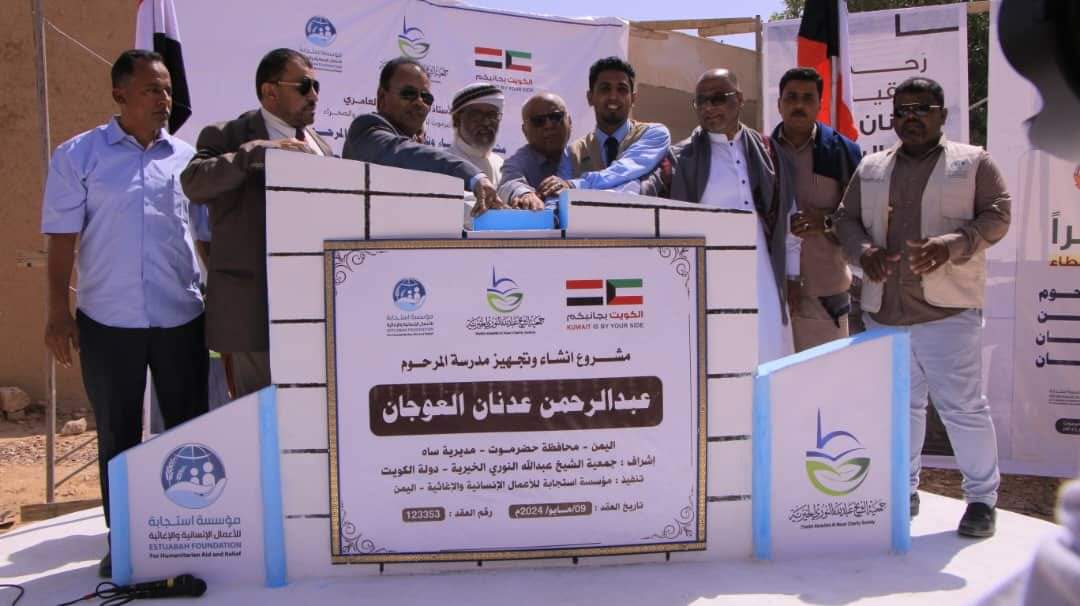 دشن وكيل محافظة حضرموت لشؤون مديريات الوادي والصحراء، الاستاذ عامر سعيد العامري، صباح اليوم، العمل بمشروع بناء مدرسة الفقيد عبدالرحمن العوجان (مدرسة عمر بن حليمان للتعليم الأساسي سابقا) بدعم من عائلة الفقيد عبدالرحمن العوجان بدولة الكويت، بالتنسيق مع جمعية عبدالله النوري وتنفيذ مؤسسة استجابة للأعمال الانسانية.