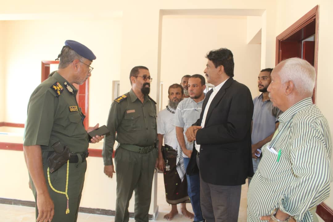 وإستمع العميد عبدالله بايعشوت والعميد فهمي بن لكديش من المقاول المنفذ للمشروع علي أحمد دومان إلى شرحاً مفصلاً عن سير العمل بالمشروع الذي شارف على الإنتهاء به من الأعمال الإنشائية.