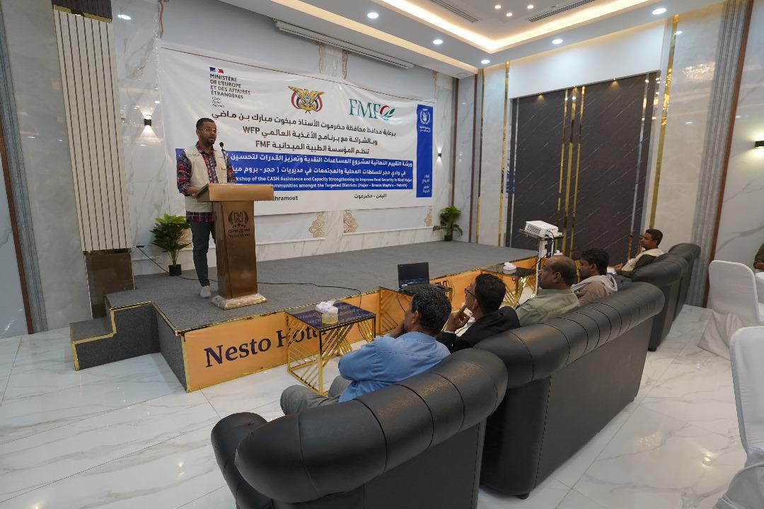 نظمت المؤسسة الطبية الميدانية FMF، بالشراكة مع برنامج الأغذية العالمية WFP ورشة التقييم النهائية لمشروع المساعدات النقدية وتعزيز القدرات لتحسين الأمن الغذائي في وادي حجر للسلطات المحلية والمجتمعات في مديريات (حجر – بروم ميفع – يبعث).