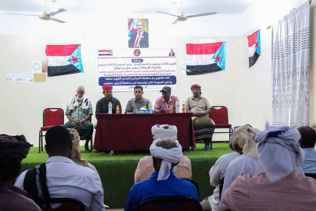 نظمت إدارة الشؤون الاجتماعية والجماهيرية بالهيئة التنفيذية للمجلس الانتقالي الجنوبي في محافظة سقطرى، اليوم الأحد، لقاءً تشاورياً مع منظمات المجتمع المدني العاملة بالمحافظة.