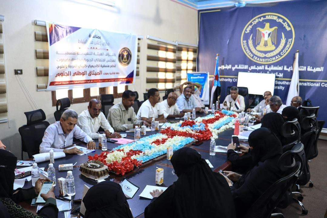 نظّمت الهيئة التنفيذية لمنسقية المجلس الانتقالي الجنوبي لكليتي التربية والعلوم بجامعة حضرموت، اليوم الأحد، حلقة نقاشية تحت عنوان “الميثاق الوطني الجنوبي.. الأسس والمبادئ العامة وقضية شعب الجنوب”، وذلك ضمن سلسلة فعاليات ذكرى إعلان فك الارتباط.
