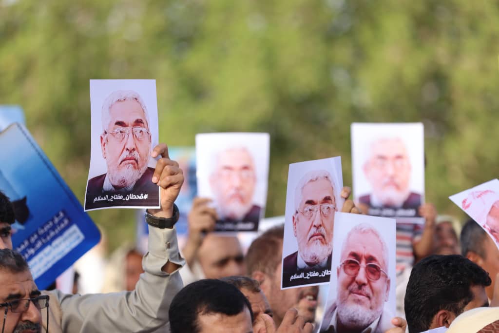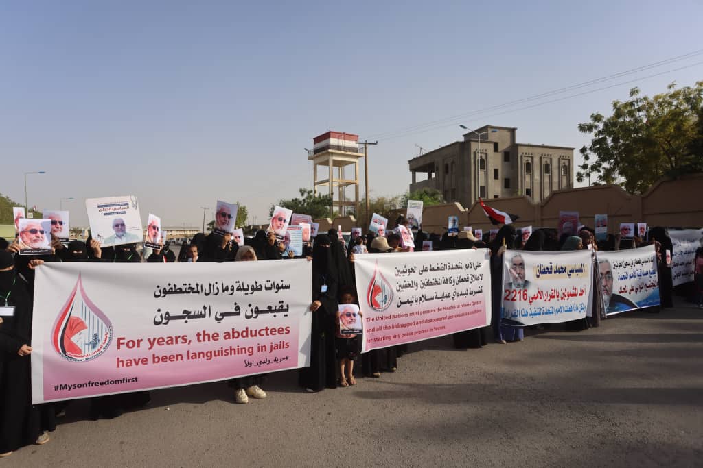 وردد المشاركون هتافات تدعو إلى عدم خوض أي مفاوضات مع مليشيا الحوثي الانقلابية قبل الكشف عن قحطان و السماح لاسرته بزيارته.