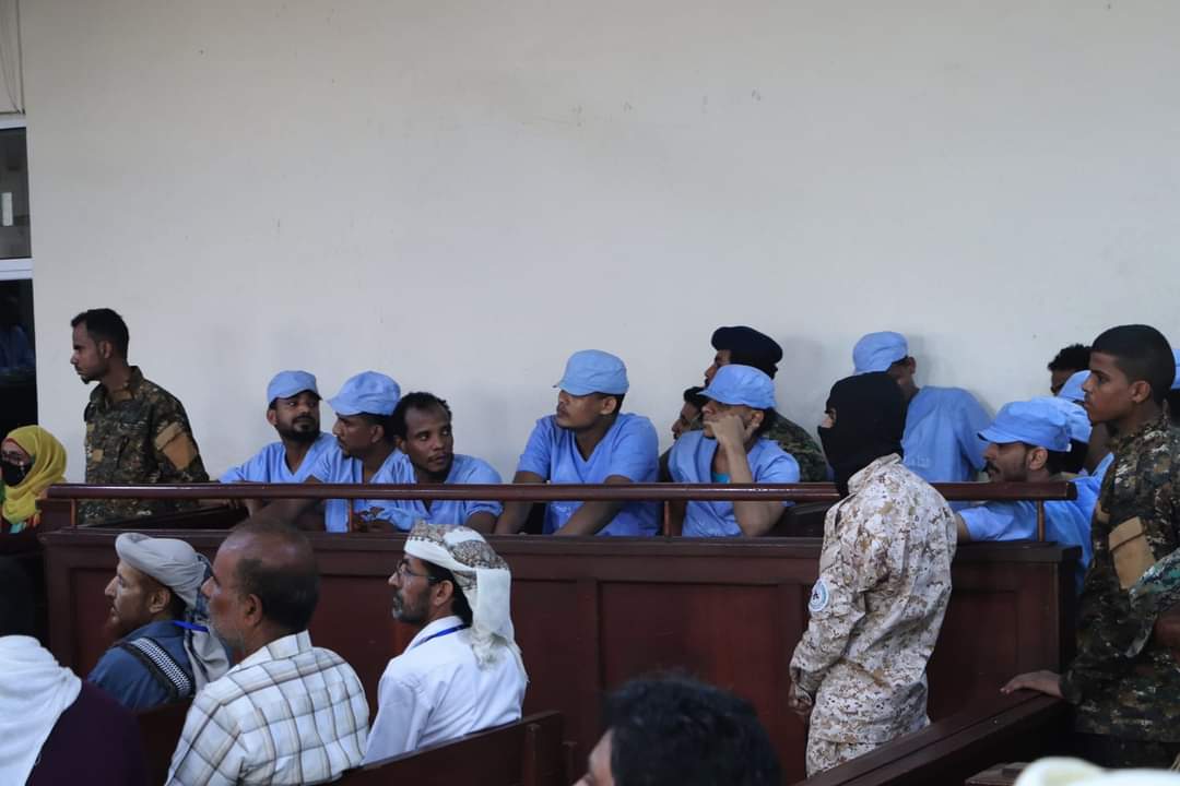 1- هارون خالد محمد 2- صالح وديع صالح الحداد 3- ابراهيم وديع صالح الحداد 4- فهد فهيم مرعي الملقب حمودي الشاطري 5- احمد علي احمد المشدلي الملقب احمد البيضاني 6- محمد احمد يحيى الميسري 7- أمجد خالد فرحان القحطاني بما نسب إليهم في قرار الاتهام ومعاقبتهم بالإعدام حدا.