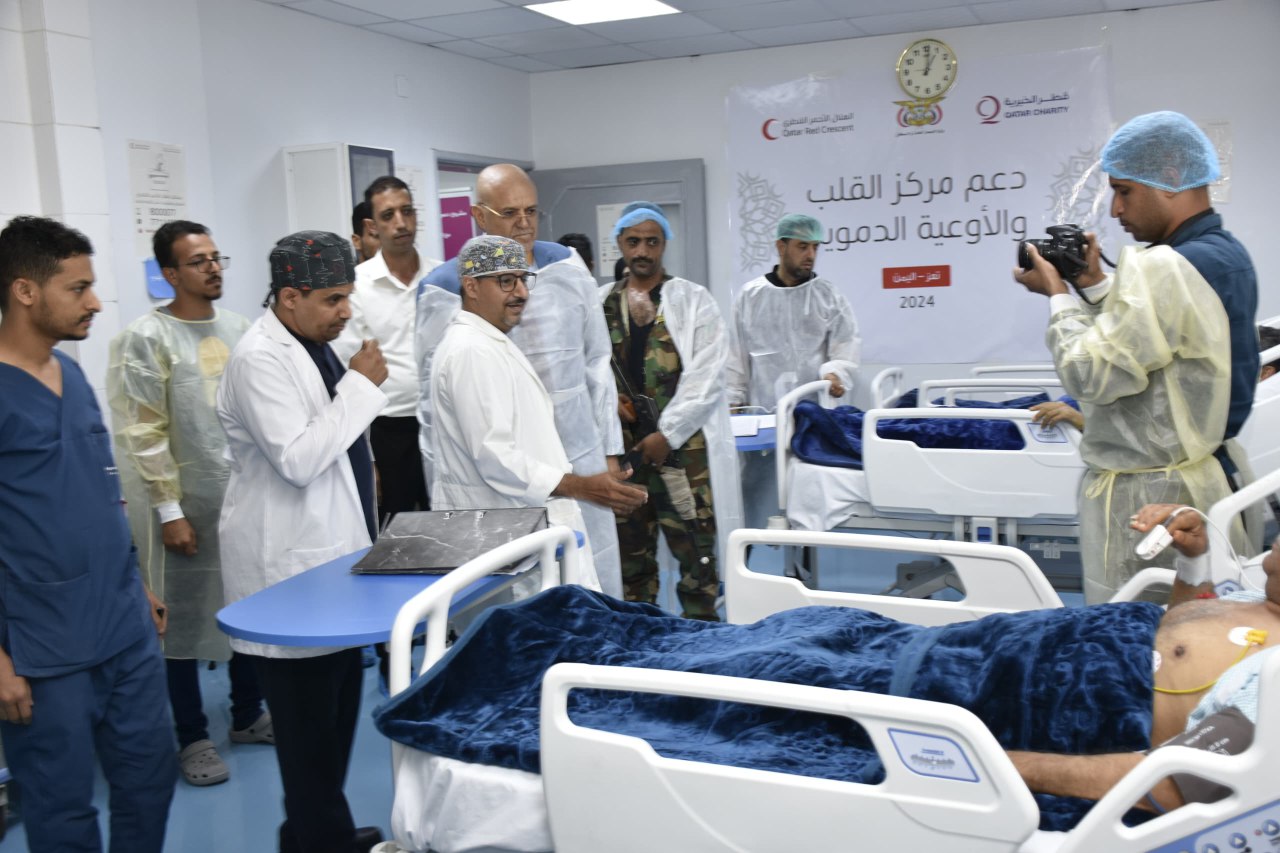 اطلع محافظ محافظة تعز نبيل شمسان، اليوم، على الخدمات الطبية والعلاجية المقدمة في مركز القلب والاوعية الدموية وزارعة الكلى، وإجراء عمليات قلب مفتوح وزراعة كلى مركبة ومعقدة لأول مرة .