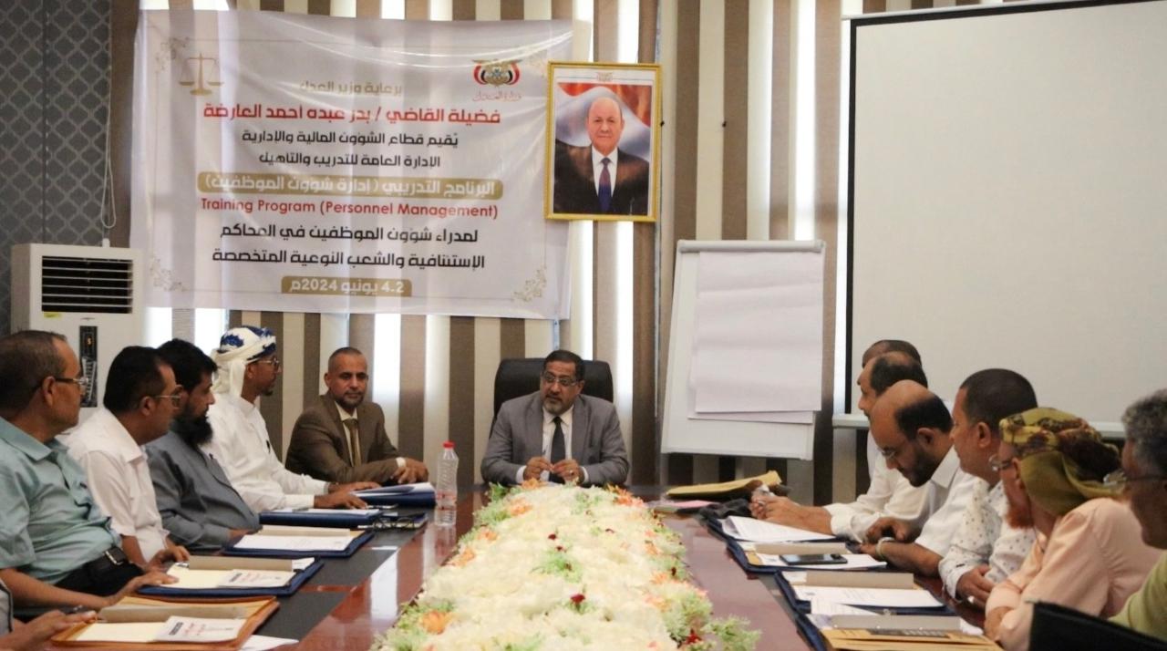 ويهدف البرنامج الذي يستمر ثلاثة أيام، إلى رفع كفاءة مدراء شؤون الموظفين في المحاكم الاستئنافية والشعب النوعية من جميع المحافظات المحررة، من خلال تزويدهم بالمعرفة والمهارات اللازمة لتنظيم وإدارة الكوادر البشرية بكفاءة وفعالية.