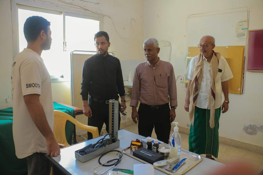 تفقد المدير العام لمديرية الشحر الأستاذ عادل أحمد باعكابة و معه سالم الغرابي مدير مكتب الصحة العامة و السكان ، سير العمل بمستشفى الحامي النموذجي ، متعرفاً على طبيعة العمل المتخذة في جميع الأقسام.