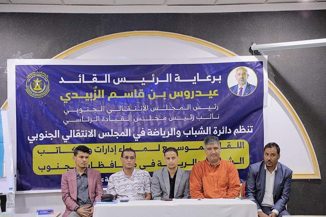 دشنت دائرة الشباب والرياضة في الأمانة العامة لهيئة رئاسة المجلس الانتقالي الجنوبي، اليوم الثلاثاء، لقاءً موسعًا لإدارات الشباب والرياضة في الهيئات المحلية للمجلس الانتقالي بالمحافظات، ومكاتب الشباب والرياضة في كافة محافظات الجنوب.