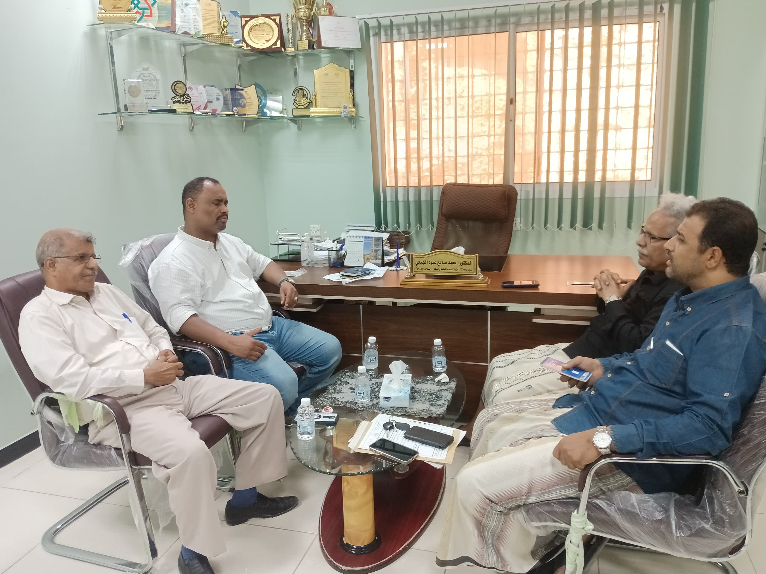 التقى الدكتور محمد صالح الجمحي المدير العام لمكتب وزارة الصحة العامة والسكان بحضرموت الساحل الأستاذ سالم احمد بانخر المدير العام لمديرية دوعن وبحضور كل من الأستاذ عبدالله خميس مرعي بن طالب نائب المدير العام لشئون التخطيط و التنمية الصحية و الأستاذ حامد الصافي مدير مكتب الصحة والسكان بالمديرية .