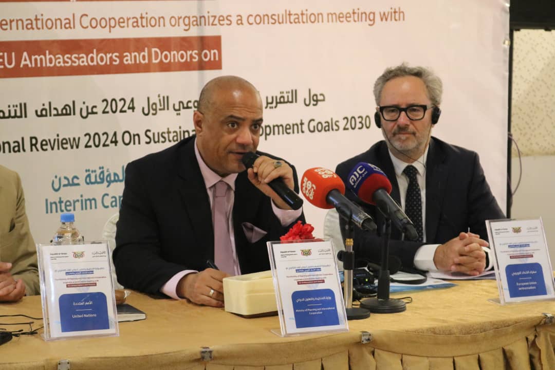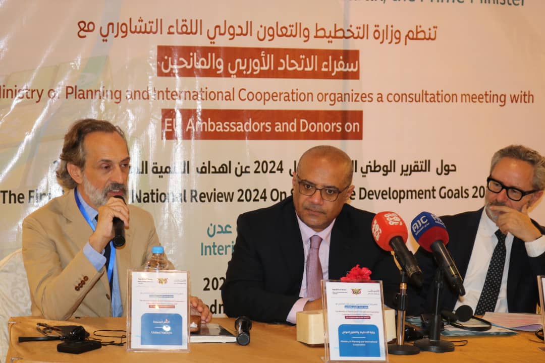 برعاية دولة رئيس الوزراء الدكتور احمد بن مبارك نظمت صباح اليوم في العاصمة عدن وزارة التخطيط والتعاون والدولي اللقاء تشاوري مع سفراء الاتحاد الاوروبي و المانحين حول التقرير الوطني الطوعي 2024 عن اهداف التنمية المستدامة 2030.