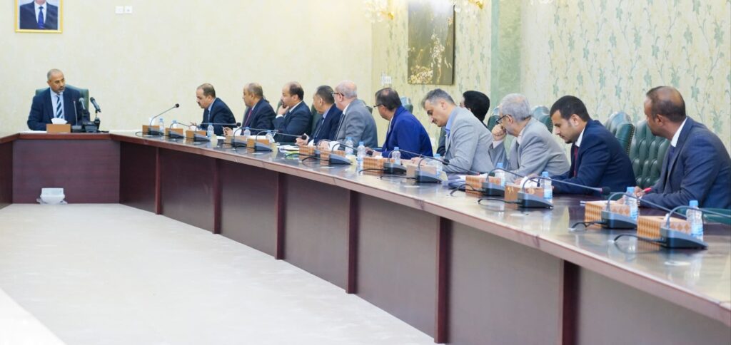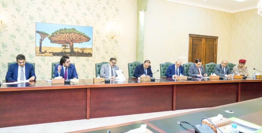 كما وقف الاجتماع أمام مشكلة تدهور العملة المحلية، ومسبباتها الرئيسية المتمثلة في ضعف إيرادات الدولة من النقد الأجنبي بسبب توقف صادرات النفط والغاز جراء استهداف مليشيا الحوثي الإرهابية لمرافئ التصدير في حضرموت وشبوة.
