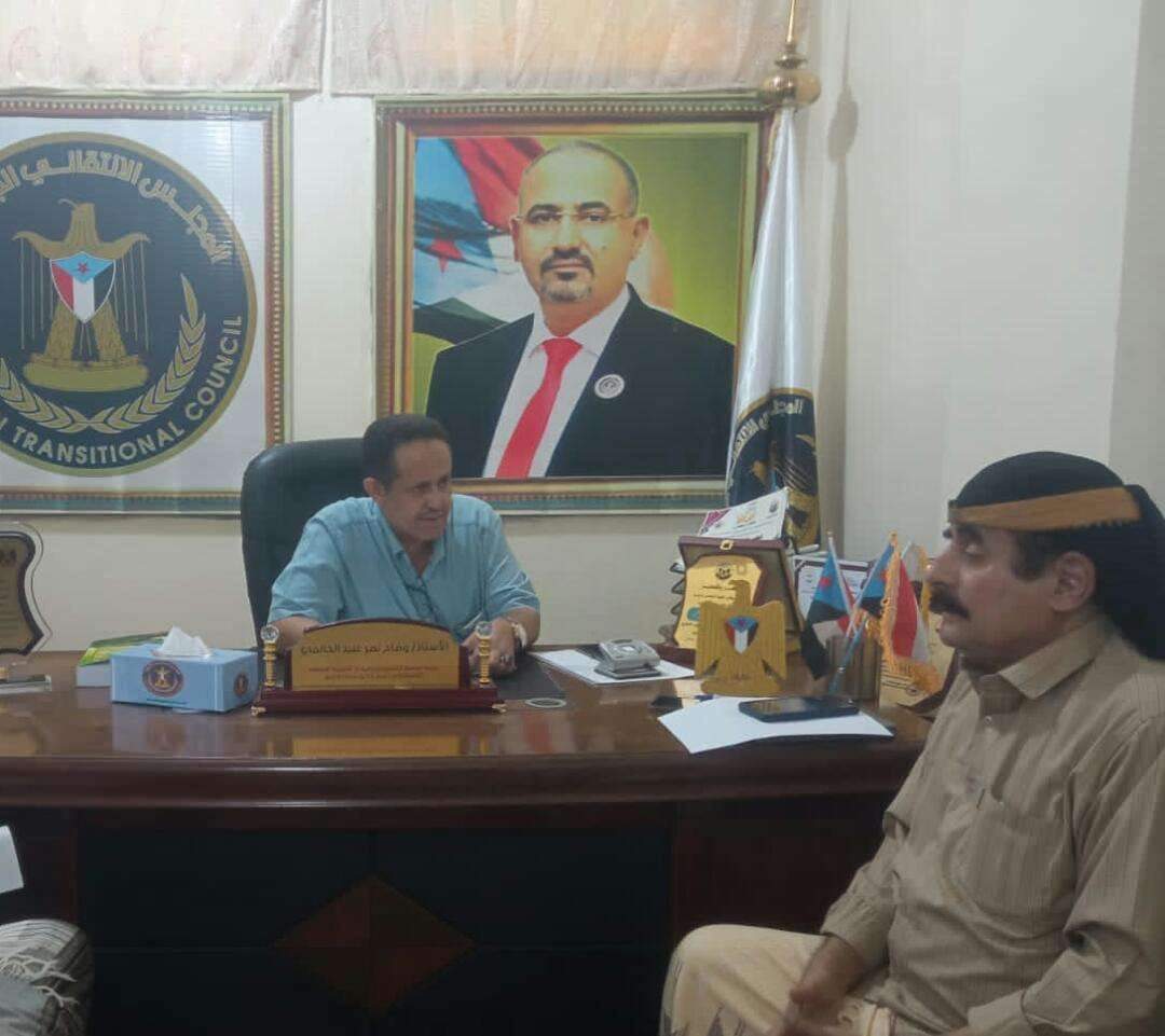 التقى رئيس الهيئة التنفيذية للقيادة المحلية للمجلس الانتقالي الجنوبي في محافظة لحج، وضاح الحالمي، اليوم الخميس، العميد علي عامر، قائد العمليات المشتركة بالمحافظة.