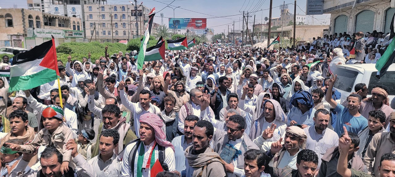 احتشد الآلاف بمحافظة مأرب، اليوم، في وقفة جماهيرية غاضبة، للتنديد باستمرار مجازر الاحتلال الصهيوني بحق أبناء الشعب الفلسطيني في قطاع غزة والضفة الغربية وكافة الأراضي المحتلة.