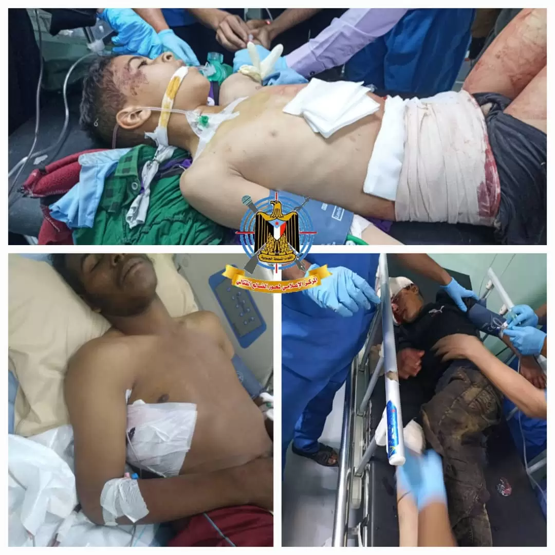 وفي تصريح لمدير مستشفى زايد الميداني سناح د. سميح حزام خص به الموقع الرسمي للقوات المسلحة الجنوبية “درع الجنوب” والمركز الإعلامي لمحور الضالع قال فيه إن طوارئ المستشفى استقبلت ظهر اليوم طفلين اصيبوا بجروح خطيرة أحدهما يدعى محمد عبدالله جعوال 10 سنوات وآخر يدعى وضاح سعيد جعوال 13 عام، وقد تم تحويلهم على الفور إلى مشافي العاصمة عدن بعد اجراء الاسعافات الاولية إلا أن الطفل الأخير فارق الحياة اثناء وصوله الى مستشفى البريهي متأثراً بإصابته، كما استقبل الى جانبهم شاب يدعى نبيل سعيد الغريبي 22 عام لايزال يرقد في المستشفى الميداني سناح يتلقى الاستطبابات الازمة.