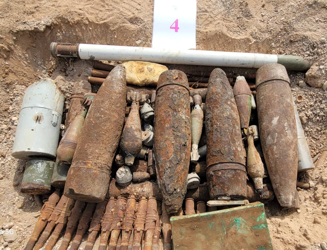 وقد شملت عملية الإتلاف والتفجير التي قام بها الفريق 19 مسام، 13 لغماً مضاداً للدبابات، 28 قذيفة منوعة، لغمان مضادان للأفراد، 129 فيوزاً منوعاً، 596 طلقة منوعة، 3 عبوات ناسفة، وقنبلة يدوية واحدة.