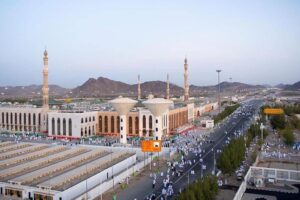 وكان الحجيج قد توافدوا منذ، صباح يوم الجمعة، (الثامن من ذي الحجة)، إلى مشعر منى لقضاء يوم “التروية” اقتداءً بسنة الرسول محمد – صلى الله عليه وسلم-، ويقع مشعر منى بين مكة المكرمة ومشعر مزدلفة على بُعد 7 كيلو مترات شمال شرق المسجد الحرام.