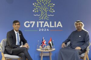 وذكرت وكالة الانباء الاماراتية (وام) بان ذلك جاء على هامش مشاركة سموه في جلسة قمة مجموعة السبع بشأن الذكاء الاصطناعي والطاقة التي تستضيفها الجمهورية الإيطالية.